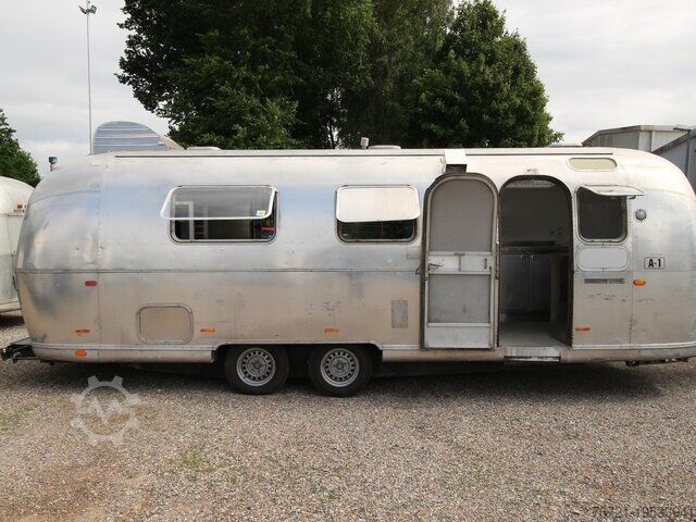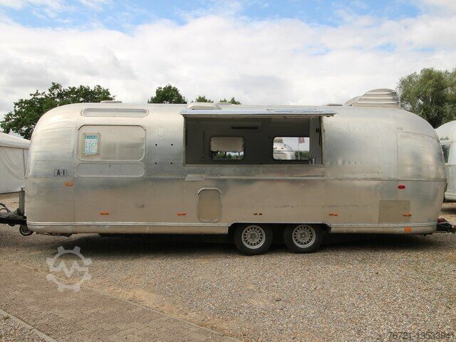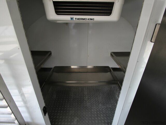 Thermo King refrigeration unit, refrigeration unit with 2nd evaporator, insulated, new general inspection/emissions test (HU/AU), vehicle length 8350 mm, vehicle width 2470 mm, vehicle height 2720 mm. Airstream Land Yacht Overlander Catering & Food Trailer, kitchen conversion with serving hatch, working area with sink, cupboards, shelves, hot water, wastewater, combi steamer with 220/400 Volt connection, industrial dishwasher, refrigerator, walk-in cold storage/freezer room, Thermo King cooling cell/freezer up to minus 20 degrees with deep-freeze function. Power sockets throughout the interior, various windows, entrance door with fly screen, position lights, roof hatches, fresh water tank, waste water tank, instantaneous water heater, 2x 140Ah 12V AfM batteries.