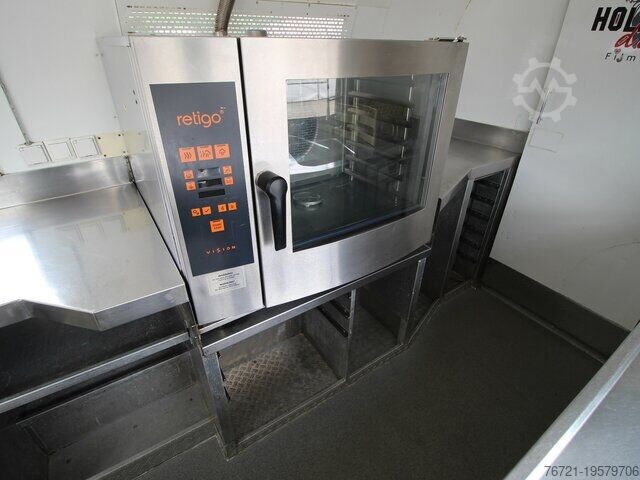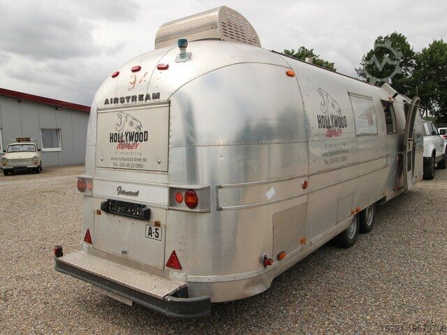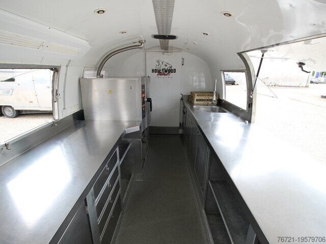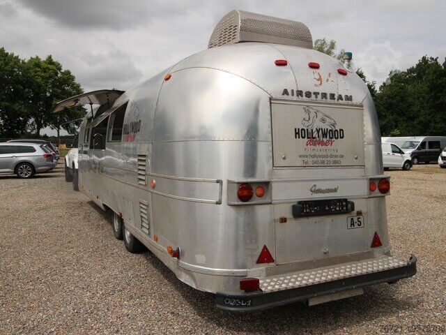 Thermo King refrigeration unit, refrigeration unit with second evaporator, insulated, new vehicle inspection, vehicle length 10,000 mm, vehicle width 2,450 mm, vehicle height 2,800 mm. Airstream Land Yacht Sovereign Catering + Food Trailer, kitchen fit-out, serving flap, workstation, sink, cabinets, shelves, hot water, waste water, combi steamer, 220/400 Volt connection, industrial dishwasher, refrigerator, walk-in cold storage/freezer cell, walk-in Thermo King cold/freezer cell down to minus 20 degrees deep-freeze function, power sockets throughout the interior, various windows, entrance door with fly screen, marker lights, roof hatches, fresh water tank, waste water tank, instantaneous water heater, 2x 140Ah 12V AfM batteries.