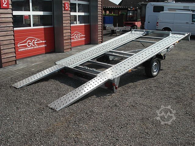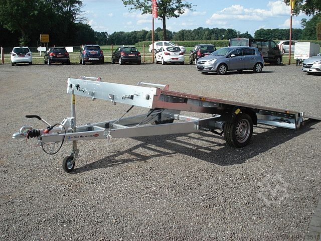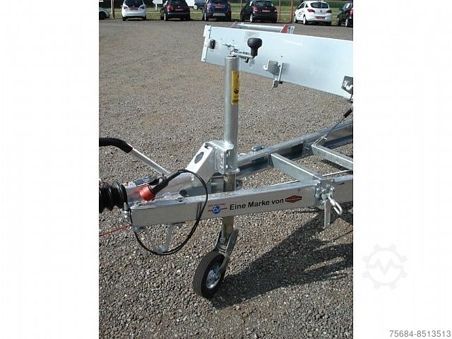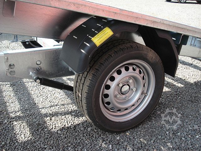 Equipment: Mechanically tiltable loading area, ramps for docking, gas pressure dampers for easy lifting and lowering, 13 inch tires, wheel stoppers (safety blocks), V-drawbar, automatic support wheel, wheel chocks
