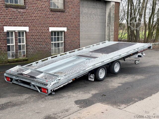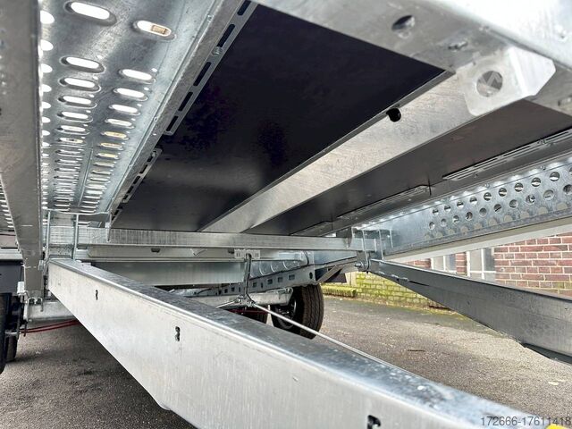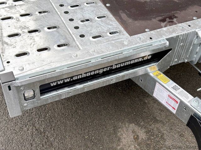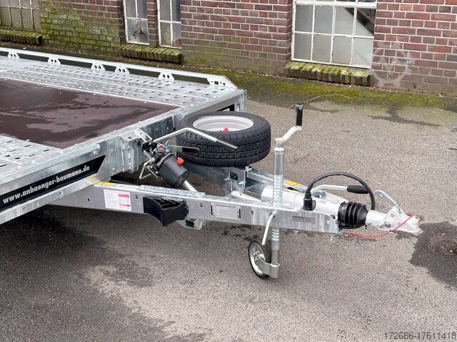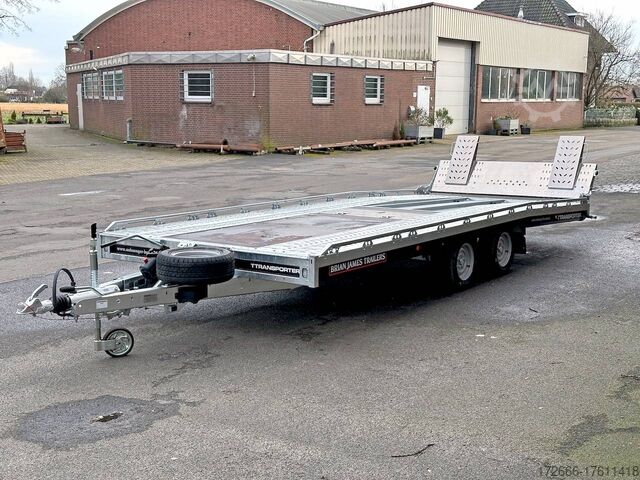 hydraulic pump / sloping rear / continuous ramp / perforated lashing floor / e-wheel / floor storage box, automatic reversing, drive-on ramp, hot-dip galvanizing, * IMMEDIATELY AVAILABLE * incl. hydraulic pump / sloping rear / continuous ramp / perforated lashing floor / e-wheel / floor storage box Technical data: - Make: Brian James - Model: T Transporter 231 - Vehicle type: car transporter - Vehicle condition: new vehicle - First registration: without first registration - TÜV/HU: 2 years from first registration - Internal dimensions (LxWxH): 550 x 210 x 0 cm - External dimensions (LxWxH): 710 x 218 x 100 cm - Loading height of floor: 65 cm - Perm. Total weight: 3,500 kg - Unladen weight: 946 kg - Payload: 2,554 kg - Chassis: High loader (wheels under the body) - Tyres: 195/60R12C - Chassis: ALKO rubber suspension axle - Support wheel: Yes - 100 km/h approval: Optional, can be retrofitted DESCRIPTION - Perforated steel lashing floor offers high slip resistance and is extremely wear-resistant, even under the toughest operating conditions. - Additionally sloped rear ensures a particularly low drive-on angle - Vehicle can also be fitted with all options after purchase: enormous potential for retrofitting: winches, other ramps etc. can be retrofitted at any time - Very sturdy welded steel frame - Storage compartments for drive-on ramps at the rear recessed in the loading area - Sliding contact edge for drive-on ramps for different track widths - Continuous drive-on ramp, + additional ramps, foldable, adjustable (heavy-duty) - Hydraulic tipping function (hand pump) incl. cylinder, for very flat drive-on ramps. Hydraulic tipping function (hand pump incl. cylinder, for very flat drive-on angle - Lockable floor storage box with spring-loaded lid - Hole pattern of galvanized steel lanes - Numerous lashing points and a heavy-duty floor offer flexible lashing options and perfect grip. - Side panels color: black - Additional lashing options thanks to side railing - Removable railing all round: The multi-part side profile railing offers numerous lashing points and is removable so that wider loads can be transported. - Frame completely hot-dip galvanized - Spare wheel mounted on the drawbar for easy access - Automatic reverse drive - ALKO overrun device and parking brake - Cast steel coupling head with integrated ALKO high-security lock - Very stable V-drawbar REINFORCED - 13-pin plug - Reversing lights - Large LED safety lighting - Complete LED lighting: Extremely bright, durable and reliable. - dynamic LED indicators are clearly visible even in bad weather - robust protection for the rear lights - integrated rear fog light - various front, side and rear marker lights - heavy-duty support wheel - 5-year chassis warranty New vehicle with warranty and TÜV. We are happy to offer you suitable financing !, Descriptions and pictures are protected by copyright !!! Over 800 trailers immediately available for you! We are for over 30 years Brian James / Humbaur / Hapert / Unsinn / Cheval Liberte / Koch / Debon / Stedele / TPV / Tohaco / Vezeko / Variant / Vlemmix - specialized dealer & repair - workshop - delivery Germany-wide with surcharge possible! Anhänger Zentrum BAUMANN GmbH Dinxperloer Str. 389 46399 Bocholt - Errors, omissions and prior sale excepted -
