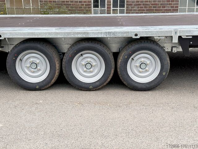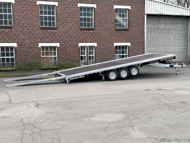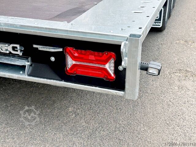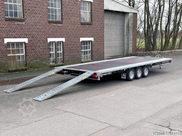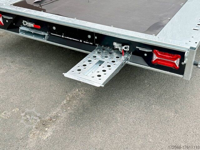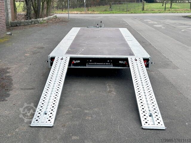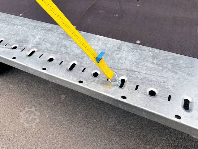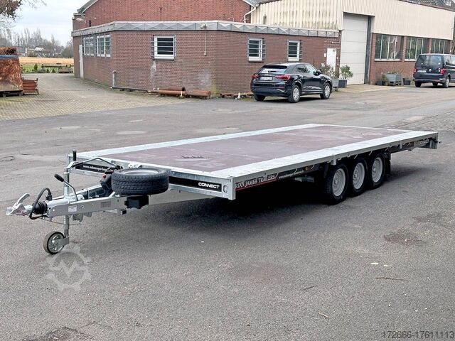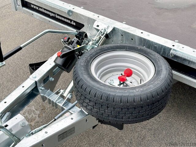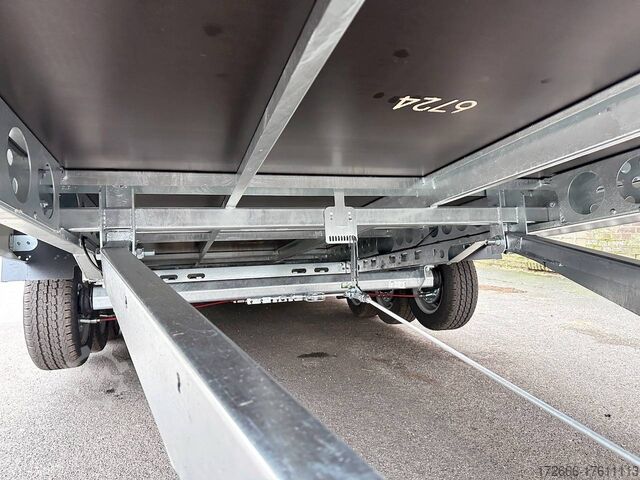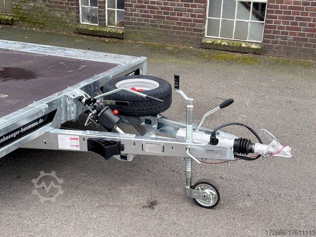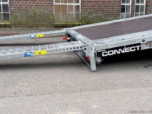 Automatic reverse drive, tiltable loading area / drive-on ramps / multifunctional trailer / ramp shaft / perforated lashing floor, tiltable loading area, hot-dip galvanized, * IMMEDIATELY AVAILABLE * including tiltable loading area / drive-on ramps / multifunctional trailer / ramp shaft / perforated lashing floor TECHNICAL DATA - Make: Brian James - Model: Connect 476 - Vehicle type: High loader - Vehicle condition: New vehicle - First registration: Without first registration - TÜV/HU: 2 years from first registration - Internal dimensions (LxWxH): 550 x 227 x 0 cm - External dimensions (LxWxH): 717 x 229 x 80 cm - Loading height of floor: 65 cm - Perm. Total weight: 3,500 kg - Unladen weight: 979 kg - Payload: 2,521 kg - Chassis: High loader (wheels under the body) - Tyres: 195/60R12C - Chassis: ALKO rubber suspension axle - Support wheel: Yes - 100 km/h approval: Optional, can be retrofitted DESCRIPTION - Most adaptable multifunctional trailer for commercial goods and vehicle transport of all kinds. - Every available option can be flexibly attached or detached and thus enables customization for almost any application - Perforated steel lashing floor in combination with 18 mm multiplex floor offers high slip resistance and is extremely wear-resistant, even under the toughest operating conditions. - Insertion option at all 4 corners for drop sides, tarpaulin frames, drop side attachments or front wall elevation - vehicle also designed for all options after purchase: enormous potential for retrofitting - very stable welded steel frame - contact edge for drive-on ramps can be moved for different track widths - numerous lashing points punched directly into the frame enable professional load securing - integrated ramp shafts - high-quality perforated steel ramps, galvanized, L=2.35m, the pair - tiltable cargo bed with manual hydraulic hand pump - side panels color: black - frame cpl. Sturdy net hooks under the loading area - Spare wheel mounted on the drawbar for easy access - Automatic reverse - ALKO overrun device and parking brake - Cast steel coupling head with integrated ALKO high-security lock - Very stable V-drawbar REINFORCED - 13-pin plug - Reversing lights - Large LED safety lighting - Complete LED lighting: Extremely bright, durable and reliable. - dynamic LED indicators are clearly visible even in bad weather - robust protection for the rear lights - integrated rear fog light - various front, side and rear marker lights - heavy-duty support wheel - 5-year chassis warranty Accessories can be retrofitted - please enquire! - Supports - Storage box - Drop sides - Drive-on flap -. Winches - attachments New vehicle with warranty and TÜV. We are happy to offer you suitable financing !, Descriptions and pictures are protected by copyright !!! Over 800 trailers immediately available for you! We are for over 30 years Brian James / Humbaur / Hapert / Unsinn / Cheval Liberte / Koch / Debon / Stedele / TPV / Tohaco / Vezeko / Variant / Vlemmix - specialized dealer & repair - workshop - delivery Germany-wide with surcharge possible! Anhänger Zentrum BAUMANN GmbH Dinxperloer Str. 389 46399 Bocholt - Errors, omissions and prior sale excepted -