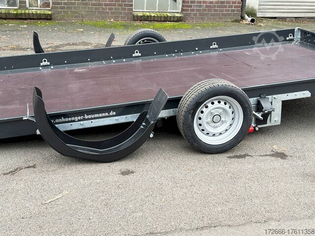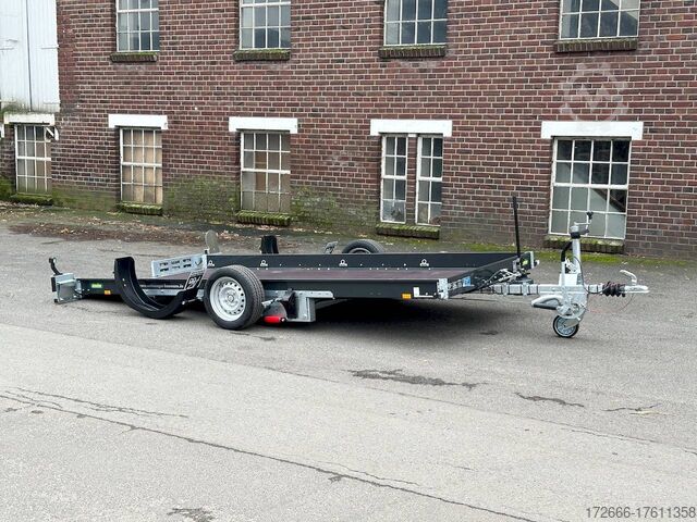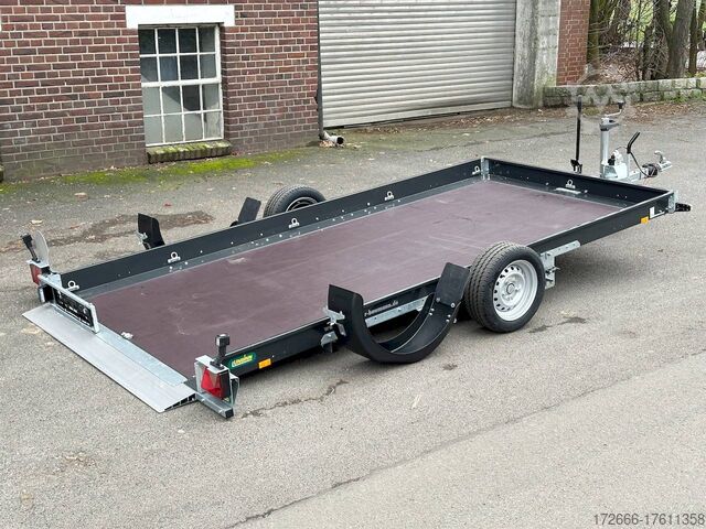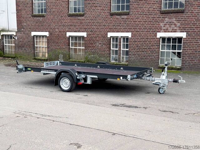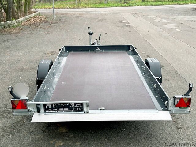 Hydraulics, automatic reverse drive, hot-dip galvanizing, lowerable loading platform / 1800 kg axle / Including 100km/h, * IMMEDIATELY AVAILABLE * incl. lowerable loading platform / 1800 kg axle / Including 100km/h Technical data: - Make: Unsinn - Model: UA 3718-18-13 - Vehicle type: Lowerable trailer - Vehicle condition: New vehicle - Initial registration: Without initial registration - TÜV/HU: 2 years from initial registration - Internal dimensions (LxWxH): 375 x 180 x 15 cm - External dimensions (LxWxH): 523 x 238 x 96 cm - Loading height of floor: 46 cm - Perm. Total weight: 1,800 kg - Unladen weight: 475 kg - Payload: 1,325 kg - Chassis: Low loader (wheels next to the body) - Tires: 195/50R13C - Chassis: ALKO rubber suspension - Support wheel: Yes, automatic - 100km/h approval: Yes EQUIPMENT - Brakes: Yes - Number of axles: 1 - Floor: Wooden floor - Drop sides: Steel drop sides - Drop side height: 15 cm - Colour: Black - Number of pallet spaces: 6 - Tipping / lowering function: Can be lowered - Hydraulic pump: Hand pump - Overrun device/brake: ALKO - Frame/chassis: Steel side member, bolted - Galvanization: Painted - Drawbar: Tubular drawbar - Mudguards: Plastic mudguards - Motorcycle rocker: Optional, can be retrofitted - Superstructures / attachments: Optional, attachable - Ramps/ramp flap: Optional - Drive-on angle: approx. 6 - Supports: Optional, can be retrofitted - Lashing eyes: 12 - Rear lighting: Incandescent lamps, lamps recessed in rear frame - Plug for lighting: 13-pin - Vehicle documents: ZBII & COC documents DESCRIPTION - 3-sided body made of sturdy galvanized steel profile and powder-coated in black-grey (RAL 7021) - Continuous drive-on wedge enables drive-on across the entire width of the cargo bed - Insertion options at all corners, e.g. for tarpaulin frame - Folding number plate frame 10 fold-down lashing eyes in the side wall profile - 1 lashing eye in the front wall profile - 1 lashing ring in the middle of the rear loading area - Reinforced, automatic support wheel for safe parking of the loaded trailer - Made of multi-glued screen printing plate, 18 mm, continuous without joints, anti-slip and waterproof - Drive-on angle in tilted state approx. 6 - Rear license plate holder, can be swiveled away for loading - Automatic reverse function - 13-pin plug - Reversing light - Large safety lighting - Integrated rear fog light - Lighting recessed in rear frame - Automatic center support wheel Accessories can be retrofitted - please enquire: - Anti-theft device - Spare wheel - Storage box - High tarpaulin - Additional lashing eyes - Reversing light - Lashing straps - and much more. New vehicle with warranty and TÜV. We are happy to offer you suitable financing !, Descriptions and pictures are protected by copyright !!! Over 800 trailers immediately available for you! We are for over 30 years Brian James / Humbaur / Hapert / Unsinn / Cheval Liberte / Koch / Debon / Stedele / TPV / Tohaco / Vezeko / Variant / Vlemmix - specialized dealer & repair - workshop - delivery Germany-wide with surcharge possible! Anhänger Zentrum BAUMANN GmbH Dinxperloer Str. 389 46399 Bocholt - Errors, omissions and prior sale excepted -