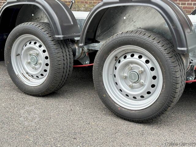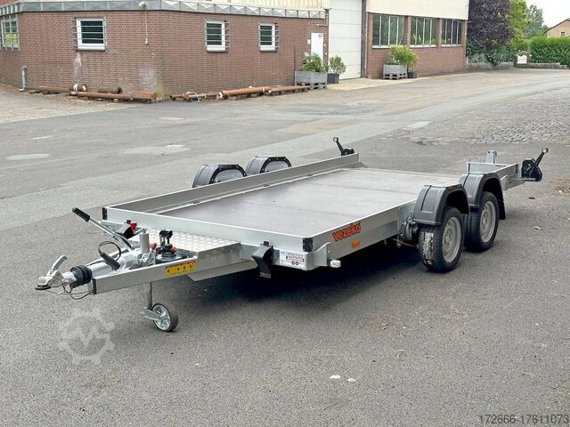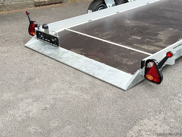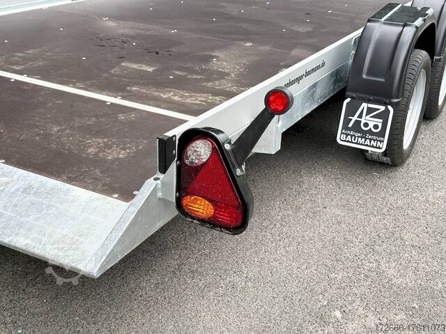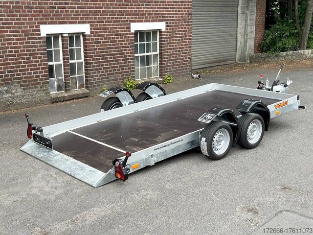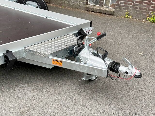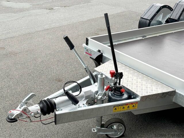 lowerable loading platform / manual hydraulics / braked, automatic reverse, hot-dip galvanizing, * IMMEDIATELY AVAILABLE * incl. lowerable loading platform / manual hydraulics / braked Technical data: - Type: New vehicle - TÜV: New/2 years - Availability: IMMEDIATELY! - Gross vehicle weight: 3,500 kg - Unladen weight: 785 kg - Payload: 2,715 kg - Interior dimensions: 394 x 187 x 10 cm (L x W x H) - Overall exterior dimensions: 553 x 254 x 80 cm (LxWxH) - Loading sill height: 44 cm - Tyres: 195/50R13C steel rim - Brake: yes - Support wheel: yes, 45 mm with clamp - 100 km/h: at extra charge - Incl. Vehicle documents Vehicle superstructure: - Floor: multiplex wooden floor - Drop sides: aluminium anodized 3-sided - Drop side height: 10cm - Chassis: low loader lowerable, ALKO rubber spring axle - Tipping function: lowerable - Hydraulics: hand pump - Drive-on angle: approx. 6 - Wheel stop: without - Overrun device & brake: ALKO - Frame/chassis: welded hot-dip galvanized steel frame - Lashing eyes: 10 pieces laterally recessed - Winch: at extra charge - Supports: supported by rear. - Ramps: with rear drive-over point - Lighting plug: 13-pin - Approval: COC papers Standard equipment: - Multiplex wooden floor - Extremely robust - Fixed 10 mm drop sides - Insertion options at all corners, e.g. for tarpaulin frame - Very sturdy welded steel frame - Frame completely hot-dip galvanized - Many options for attaching tarpaulin frame - Many options for attaching tarpaulin frame - Very sturdy welded steel frame - Many options for attaching tarpaulin frame - Many options for attaching tarpaulin frame. frame completely hot-dip galvanized - many stable cross beams therefore high point load - loading area can be lowered hydraulically - mechanical safety locking of the swivel axle in driving mode - with drive-over point at the rear - additional longitudinal struts welded in throughout - storage box at the front - 10 lashing eyes inside the loading area - license plate holder at the rear, can be swivelled away for loading - ALKO overrun device and parking brake - ALKO coupling head - very stable V-drawbar REINFORCED - automatic reverse drive - 13-pin plug - reversing lights - large reversing light - large rear lights - rear view mirror - large rear view mirror - large rear view mirror. plug - reversing light - large safety lighting - integrated rear fog light - lighting recessed in rear frame - support wheel with central clamp - registration papers: COC papers Accessories can be retrofitted - please enquire: - 100 km/h approval with wheel shock absorbers - anti-theft device - spare wheel - high tarpaulin - additional lashing eyes - reversing light - lashing straps - and much more. New vehicle with warranty and TÜV. We are happy to offer you suitable financing !, Descriptions and pictures are protected by copyright !!! Over 800 trailers immediately available for you! We are for over 30 years Brian James / Humbaur / Hapert / Unsinn / Cheval Liberte / Koch / Debon / Stedele / TPV / Tohaco / Vezeko / Variant / Vlemmix - specialized dealer & repair - workshop - delivery Germany-wide with surcharge possible! Anhänger Zentrum BAUMANN GmbH Dinxperloer Str. 389 46399 Bocholt - Errors, omissions and prior sale excepted -