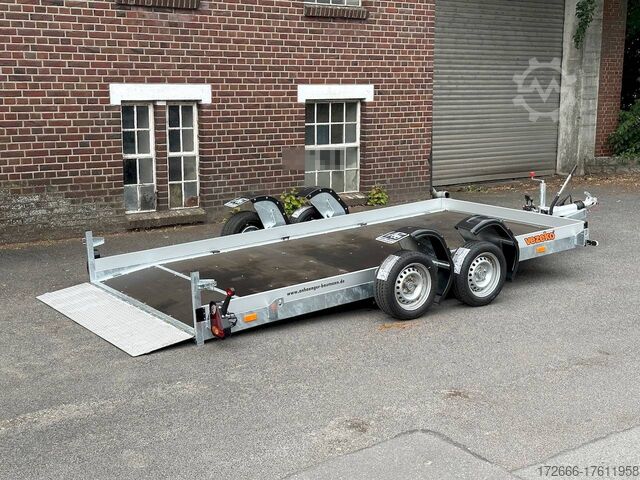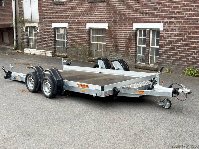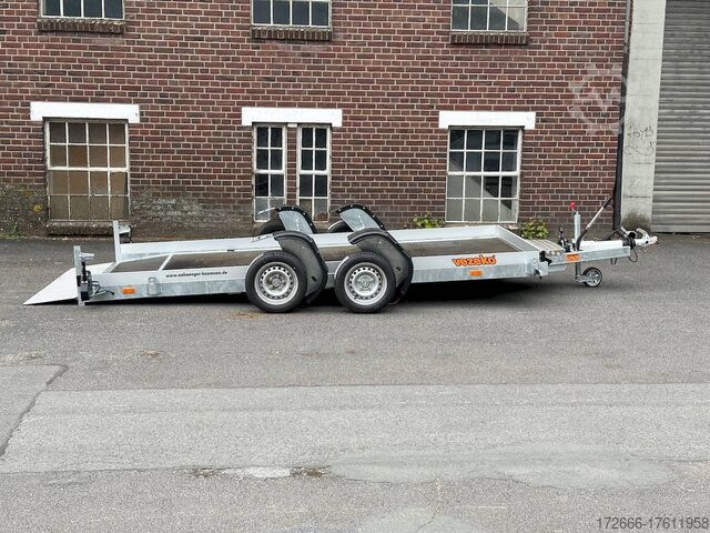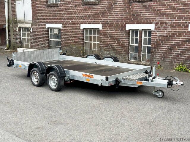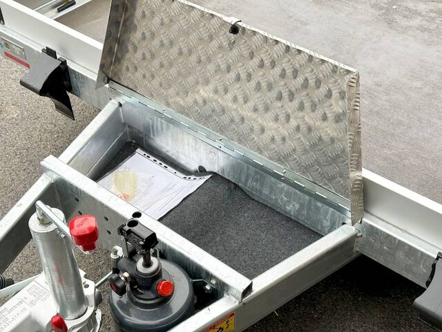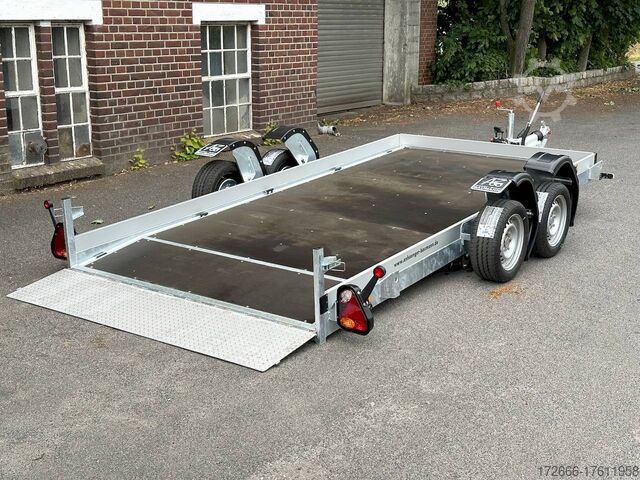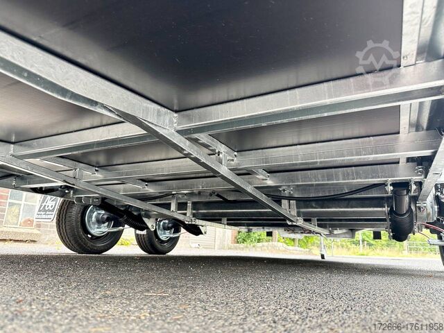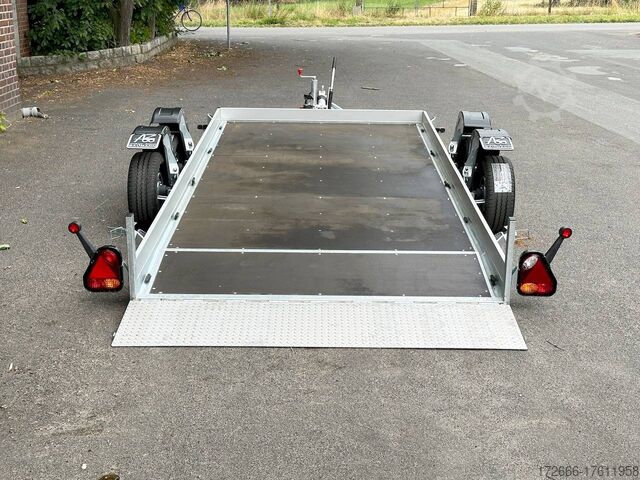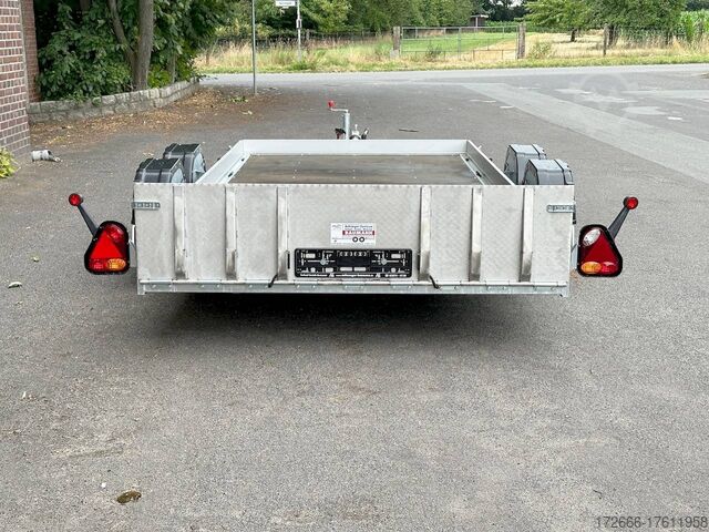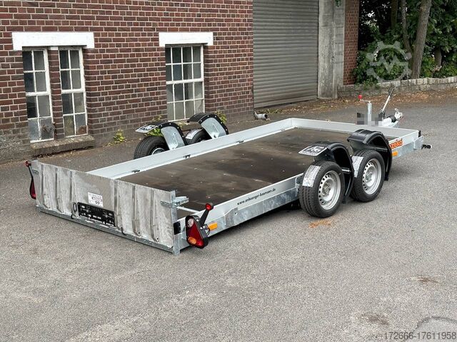 rear ramp / lowerable loading platform / manual hydraulics / braked, automatic reversing, hot-dip galvanizing, * IMMEDIATELY AVAILABLE * incl. rear ramp / lowerable loading platform / manual hydraulics / braked Technical data: - Type: New vehicle - TÜV: New/2 years - Availability: IMMEDIATELY! - Gross vehicle weight: 3,500 kg - Unladen weight: 785 kg - Payload: 2,715 kg - Interior dimensions: 394 x 187 x 10 cm (L x W x H) - Overall exterior dimensions: 553 x 254 x 80 cm (L x W x H) - Loading sill height: 44 cm - Tyres: 195/50R13C steel rim - Brake: yes - Support wheel: yes, 45 mm with clamp - 100 km/h: at extra charge - Incl. Vehicle documents Vehicle superstructure: - Floor: Multiplex wooden floor - Drop sides: Aluminium anodized 3-sided - Drop side height: 10cm - Chassis: Low loader lowerable, ALKO rubber spring axle - Tipping function: lowerable - Hydraulics: Hand pump - Drive-on angle: approx. 6 - Wheel stopper: without - Overrun device & brake: ALKO - Frame/chassis: Welded hot-dip galvanized steel frame - Lashing eyes: 10 pieces recessed on the side - Winch: at extra charge - Supports: Supported by rear. - Ramps: with rear drive-over point - Lighting plug: 13-pin - Approval: COC papers Standard equipment: - Multiplex wooden floor - Extremely robust - Fixed 10 mm drop sides - Insertion options at all corners, e.g. for tarpaulin frame - Very sturdy welded steel frame - Frame completely hot-dip galvanized frame completely hot-dip galvanized - many stable cross beams therefore high point load - loading area can be lowered hydraulically - mechanical safety locking of the swivel axle in driving mode - with drive-over point at the rear - additional longitudinal struts welded in throughout - storage box at the front - 10 lashing eyes inside the loading area - license plate holder at the rear, can be swivelled away for loading - ALKO overrun device and parking brake - ALKO coupling head - very stable V-drawbar REINFORCED - automatic reversing - 13-pin plug - reversing lights - large reversing lights - large rear lights - rear view mirror - large rear view mirror - large rear view mirror. plug - reversing lights - large dimensioned safety lighting - integrated rear fog light - lighting recessed in rear frame - support wheel with central clamp - registration papers: COC papers Incl. special equipment: - Innox ramp plate mounted at rear, h= 42cm foldable with license plate holder Accessories can be retrofitted - please enquire: - 100km/h approval with wheel shock absorbers - high tarpaulin - reversing lights - and much more. New vehicle with warranty and TÜV. We are happy to offer you suitable financing !, Descriptions and pictures are protected by copyright !!! Over 800 trailers immediately available for you! We are for over 30 years Brian James / Humbaur / Hapert / Unsinn / Cheval Liberte / Koch / Debon / Stedele / TPV / Tohaco / Vezeko / Variant / Vlemmix - specialized dealer & repair - workshop - delivery Germany-wide with surcharge possible! Anhänger Zentrum BAUMANN GmbH Dinxperloer Str. 389 46399 Bocholt - Errors, omissions and prior sale reserved -