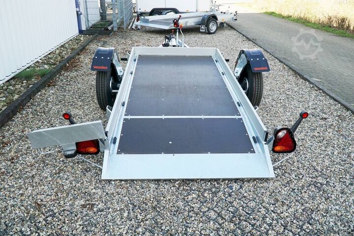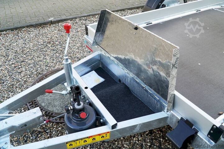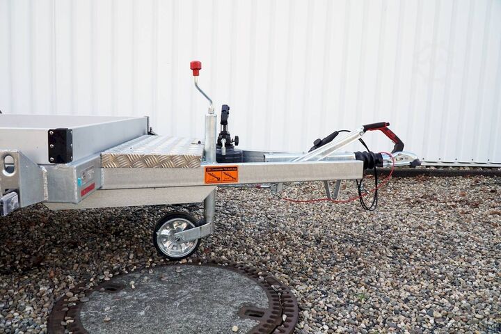 lowerable loading platform / manual hydraulics / braked, * IMMEDIATELY AVAILABLE * incl. lowerable loading platform / manual hydraulics / braked Technical data: - Type: New vehicle - TÜV: New/2 years - Availability: IMMEDIATELY! - Gross vehicle weight: 1,000 kg - Unladen weight: 325 kg - Payload: 675 kg - Interior dimensions: 246 x 127 x 10 cm (L x W x H) - Overall exterior dimensions: 408 x 192 x 70 cm (L x W x H) - Loading sill height: 48 cm - Tyres: 155R13C steel rim - Brake: yes - Support wheel: yes, 45 mm with clamp - 100 km/h: at extra charge - incl. vehicle documents Vehicle documents Vehicle superstructure: - Floor: Multiplex wooden floor - Drop sides: Aluminium anodized 3-sided - Drop side height: 10cm - Chassis: Low loader lowerable, ALKO rubber spring axle - Tipping function: lowerable - Hydraulics: Hand pump - Drive-on angle: approx. 6 - Wheel stopper: without - Overrun device & brake: ALKO - Frame/chassis: Welded hot-dip galvanized steel frame - Lashing eyes: 8 pieces recessed on the side - Winch: at extra charge - Supports: Supported by rear. - Ramps: with rear drive-over point - Lighting plug: 13-pin - Approval: COC papers Standard equipment: - Multiplex wooden floor - Extremely robust - Fixed 10 mm drop sides - Insertion options at all corners, e.g. for tarpaulin frame - Very sturdy welded steel frame - Frame completely hot-dip galvanized frame completely hot-dip galvanized - many stable cross beams therefore high point load - loading area can be lowered hydraulically - mechanical safety locking of the swivel axle in driving mode - with drive-over point at the rear - additional longitudinal struts welded in throughout - storage box at the front - 8 lashing eyes inside the loading area - license plate holder at the rear, can be swivelled away for loading - ALKO overrun device and parking brake - ALKO coupling head - very stable V-drawbar REINFORCED - automatic reversing - 13-pin plug - reversing lights - large reversing lights - large rear lights - rear view mirror - large rear view mirror - large rear view mirror. plug - reversing lights - large safety lighting - integrated rear fog light - lighting recessed in rear frame - jockey wheel with central clamp - registration papers: COC papers Accessories can be retrofitted - please enquire: - 100 km/h approval with wheel shock absorbers - anti-theft device - spare wheel - high tarpaulin - additional lashing eyes - reversing lights - lashing straps - and much more. New vehicle with warranty and TÜV. We are happy to offer you suitable financing !, Descriptions and pictures are protected by copyright !!! Over 800 trailers immediately available for you! We are for over 30 years Brian James / Humbaur / Hapert / Unsinn / Cheval Liberte / Koch / Debon / Stedele / TPV / Tohaco / Vezeko / Variant / Vlemmix - specialized dealer & repair - workshop - delivery Germany-wide with surcharge possible! Anhänger Zentrum BAUMANN GmbH Dinxperloer Str. 389 46399 Bocholt - Errors, omissions and prior sale excepted -