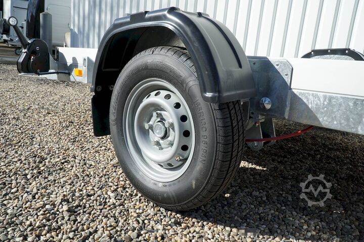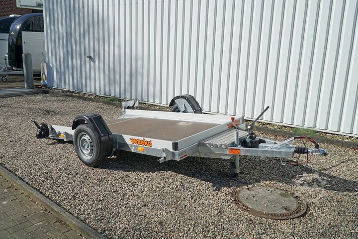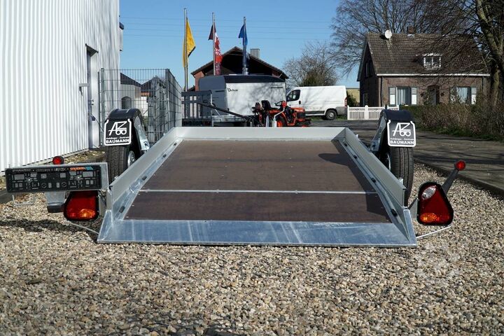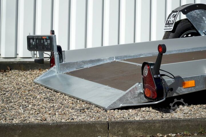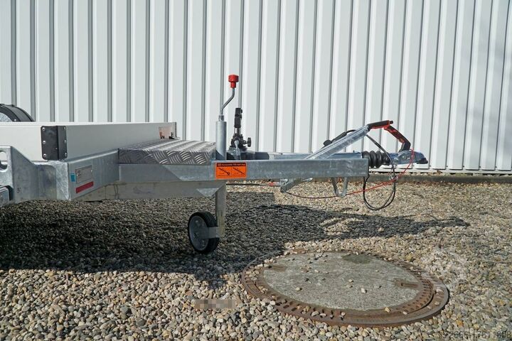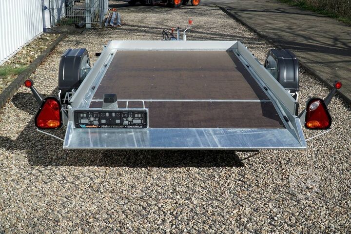 lowerable loading platform / manual hydraulics / braked, * IMMEDIATELY AVAILABLE * incl. lowerable loading platform / manual hydraulics / braked Technical data: - Type: New vehicle - TÜV: New/2 years - Availability: IMMEDIATELY! - Gross vehicle weight: 1,300 kg - Unladen weight: 385 kg - Payload: 915 kg - Interior dimensions: 272 x 162 x 10 cm (L x W x H) - Overall exterior dimensions: 434 x 228 x 70 cm (L x W x H) - Loading sill height: 48 cm - Tires: 165R13C steel rim - Brake: yes - Support wheel: yes, 45 mm with clamp - 100 km/h: at extra charge - incl. Vehicle documents Vehicle superstructure: - Floor: Multiplex wooden floor - Drop sides: Aluminium anodized 3-sided - Drop side height: 10cm - Chassis: Low loader lowerable, ALKO rubber spring axle - Tipping function: lowerable - Hydraulics: Hand pump - Drive-on angle: approx. 6 - Wheel stopper: without - Overrun device & brake: ALKO - Frame/chassis: Welded hot-dip galvanized steel frame - Lashing eyes: 8 pieces recessed on the side - Winch: at extra charge - Supports: Supported by rear. - Ramps: with rear drive-over point - Lighting plug: 13-pin - Approval: COC papers Standard equipment: - Multiplex wooden floor - Extremely robust - Fixed 10 mm drop sides - Insertion options at all corners, e.g. for tarpaulin frame - Very sturdy welded steel frame - Frame completely hot-dip galvanized frame completely hot-dip galvanized - many stable cross beams therefore high point load - loading area can be lowered hydraulically - mechanical safety locking of the swivel axle in driving mode - with drive-over point at the rear - additional longitudinal struts welded in throughout - storage box at the front - 8 lashing eyes inside the loading area - license plate holder at the rear, can be swivelled away for loading - ALKO overrun device and parking brake - ALKO coupling head - very stable V-drawbar REINFORCED - automatic reversing - 13-pin plug - reversing lights - large reversing lights - large rear lights - rear view mirror - rear view mirror - large rear view mirror. plug - reversing lights - large safety lighting - integrated rear fog light - lighting recessed in rear frame - jockey wheel with central clamp - registration papers: COC papers Accessories can be retrofitted - please enquire: - 100 km/h approval with wheel shock absorbers - anti-theft device - spare wheel - high tarpaulin - additional lashing eyes - reversing lights - lashing straps - and much more. New vehicle with warranty and TÜV. We are happy to offer you suitable financing !, Descriptions and pictures are protected by copyright !!! Over 800 trailers immediately available for you! We are for over 30 years Brian James / Humbaur / Hapert / Unsinn / Cheval Liberte / Koch / Debon / Stedele / TPV / Tohaco / Vezeko / Variant / Vlemmix - specialized dealer & repair - workshop - delivery Germany-wide with surcharge possible! Anhänger Zentrum BAUMANN GmbH Dinxperloer Str. 389 46399 Bocholt - Errors, omissions and prior sale excepted -