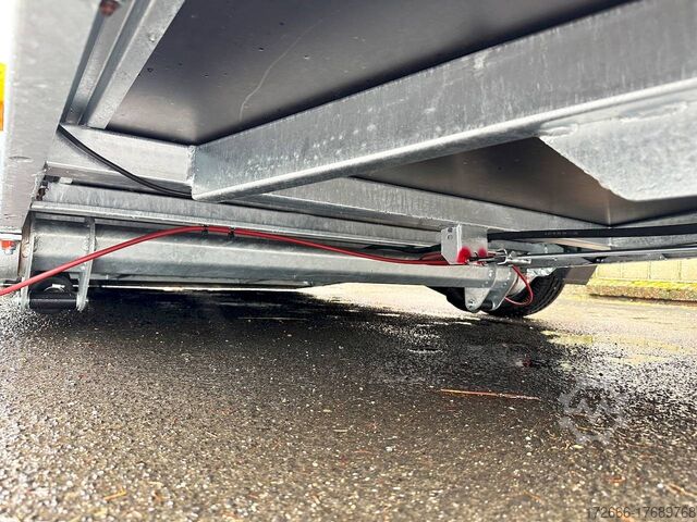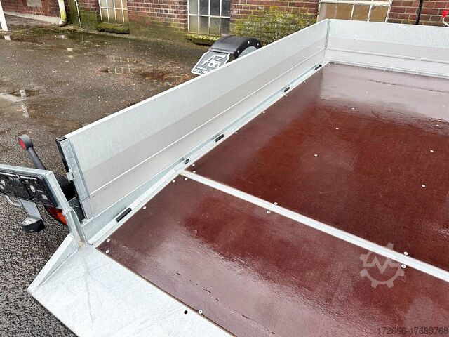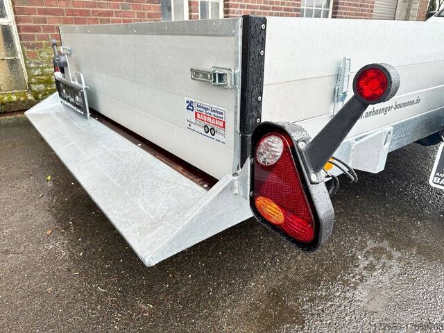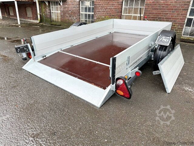 Removable drop sides / lowerable cargo bed / manual hydraulics / braked, * IMMEDIATELY AVAILABLE * incl. removable drop sides / lowerable cargo bed / manual hydraulics / braked Technical data: - Type: New vehicle - TÜV: New/2 years - Availability: IMMEDIATELY! - Gross vehicle weight: 1,300 kg - Unladen weight: 137 kg - Payload: 863 kg - Interior dimensions: 272 x 162 x 35 cm (L x W x H) - Overall exterior dimensions: 434 x 228 x 83 cm (L x W x H) - Loading sill height: 48 cm - Tires: 165R13C steel rim - Brake: yes - Support wheel: yes, 45 mm with clamp - 100 km/h: at an extra charge - incl. Vehicle documents Vehicle superstructure: - Floor: Multiplex wooden floor - Drop sides: Aluminium anodized 3-sided - Drop side height: 10+25cm - Chassis: Low loader lowerable, ALKO rubber spring axle - Tipping function: lowerable - Hydraulics: Hand pump - Drive-on angle: approx. 6 - Wheel stop: without - Overrun device & brake: ALKO - Frame/chassis: welded hot-dip galvanized steel frame - Lashing eyes: 8 pieces laterally recessed - Winch: at extra charge - Supports: supported by rear. - Ramps: with rear drive-over point - Lighting plug: 13-pin - Approval: COC papers Standard equipment: - Multiplex wooden floor - Extremely robust - Fixed drop sides - Insertion options at all corners, e.g. for tarpaulin frame - Very sturdy welded steel frame - Frame completely hot-dip galvanized frame completely hot-dip galvanized - many stable cross beams therefore high point load - loading area can be lowered hydraulically - mechanical safety locking of the swivel axle in driving mode - with drive-over point at the rear - additional longitudinal struts welded in throughout - storage box at the front - 8 lashing eyes inside the loading area - license plate holder at the rear, can be swivelled away for loading - ALKO overrun device and parking brake - ALKO coupling head - very stable V-drawbar REINFORCED - automatic reversing - 13-pin plug - reversing lights - large reversing lights - large rear lights - rear view mirror - rear view mirror - large rear view mirror. plug - reversing lights - generously dimensioned safety lighting - integrated rear fog light - lighting recessed in rear frame - support wheel with central clamp - registration papers: COC papers Special equipment included in the price: - aluminum drop sides (25cm) unmounted in a set for self-assembly - incl. tension locks for drop sides - removable rear drop side Accessories can be retrofitted - please enquire: - 100km/h approval with wheel shock absorbers - anti-theft device - spare wheel - high tarpaulin - additional lashing eyes - reversing lights - lashing straps - and much more. New vehicle with warranty and TÜV. We are happy to offer you suitable financing !, Descriptions and pictures are protected by copyright !!! Over 800 trailers immediately available for you! We are for over 30 years Brian James / Humbaur / Hapert / Unsinn / Cheval Liberte / Koch / Debon / Stedele / TPV / Tohaco / Vezeko / Variant / Vlemmix - specialized dealer & repair - workshop - delivery Germany-wide with surcharge possible! Anhänger Zentrum BAUMANN GmbH Dinxperloer Str. 389 46399 Bocholt - Errors, omissions and prior sale excepted -