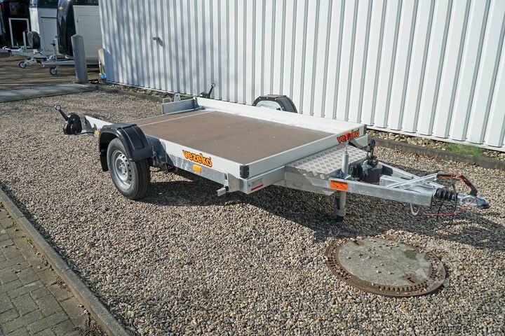 lowerable loading platform / manual hydraulics / braked, * IMMEDIATELY AVAILABLE * incl. lowerable loading platform / manual hydraulics / braked Technical data: - Type: New vehicle - TÜV: New/2 years - Availability: IMMEDIATELY! - Gross vehicle weight: 1,800 kg - Unladen weight: 440 kg - Payload: 1,360 kg - Interior dimensions: 272 x 162 x 10 cm (L x W x H) - Overall exterior dimensions: 434 x 228 x 70 cm (LxWxH) - Loading sill height: 44 cm - Tires: 195/50R13C steel rim - Brake: yes - Support wheel: yes, 45 mm with clamp - 100 km/h: at extra charge - incl. Vehicle documents Vehicle superstructure: - Floor: multiplex wooden floor - Drop sides: aluminium anodized 3-sided - Drop side height: 10cm - Chassis: low loader lowerable, ALKO rubber spring axle - Tipping function: lowerable - Hydraulics: hand pump - Drive-up angle: approx. 6 - Wheel stop: without - Overrun device & brake: ALKO - Frame/chassis: welded hot-dip galvanized steel frame - Lashing eyes: 8 pieces laterally recessed - Winch: at extra charge - Supports: supported by rear. - Ramps: with rear drive-over point - Lighting plug: 13-pin - Approval: COC papers Standard equipment: - Multiplex wooden floor - Extremely robust - Fixed 10 mm drop sides - Insertion options at all corners, e.g. for tarpaulin frame - Very sturdy welded steel frame - Frame completely hot-dip galvanized - Many options for attaching tarpaulin frame - Many options for attaching tarpaulin frame - Very sturdy welded steel frame - Many options for attaching tarpaulin frame - Many options for attaching tarpaulin frame. frame completely hot-dip galvanized - many stable cross beams therefore high point load - loading area can be lowered hydraulically - mechanical safety locking of the swivel axle in driving mode - with drive-over point at the rear - additional longitudinal struts welded in throughout - storage box at the front - 8 lashing eyes inside the loading area - license plate holder at the rear, can be swivelled away for loading - ALKO overrun device and parking brake - ALKO coupling head - very stable V-drawbar REINFORCED - automatic reversing - 13-pin plug - reversing lights - large reversing lights - large rear lights - rear view mirror - rear view mirror - large rear view mirror. plug - reversing lights - large safety lighting - integrated rear fog light - lighting recessed in rear frame - jockey wheel with central clamp - registration papers: COC papers Accessories can be retrofitted - please enquire: - 100 km/h approval with wheel shock absorbers - anti-theft device - spare wheel - high tarpaulin - additional lashing eyes - reversing lights - lashing straps - and much more. New vehicle with warranty and TÜV. We are happy to offer you suitable financing !, Descriptions and pictures are protected by copyright !!! Over 800 trailers immediately available for you! We are for over 30 years Brian James / Humbaur / Hapert / Unsinn / Cheval Liberte / Koch / Debon / Stedele / TPV / Tohaco / Vezeko / Variant / Vlemmix - specialized dealer & repair - workshop - delivery Germany-wide with surcharge possible! Anhänger Zentrum BAUMANN GmbH Dinxperloer Str. 389 46399 Bocholt - Errors, omissions and prior sale excepted -
