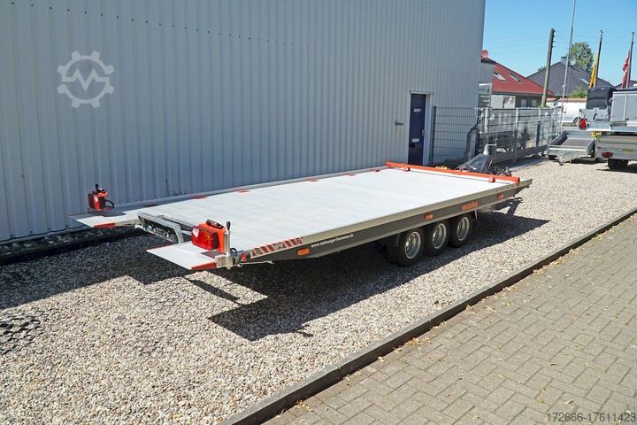 Hydraulics, automatic reverse drive, drive-on ramp, full aluminium floor / tridem / tiltable loading area / electric winch / wheel stop bar / spare wheel, hot-dip galvanizing, * IMMEDIATELY AVAILABLE * incl. full aluminium floor / tridem / tiltable loading area / electric winch / wheel stop bar / spare wheel Technical data: - Type: New vehicle - TÜV: New/2 years - Availability: IMMEDIATELY! - Gross vehicle weight: 3,500 kg - Unladen weight: 960 kg - Payload: 2,540 kg - Interior dimensions: 542 x 209 x 0 cm (L x W x H) - Overall exterior dimensions: 725 x 215 x 100 cm (LxWxH) - Loading sill height: 61 cm - Tires: 195/55R10C steel rim - Brake: yes - Support wheel: yes, automatic - 100km/h: at extra charge - incl. Vehicle documents Vehicle superstructure: - Floor: full aluminium floor - Drop sides: without - Drop side height: 0 cm - Chassis: high loader, ALKO rubber spring axle - Tipping function: yes - Hydraulics: manual hydraulics - Drive-on angle: approx. - Wheel stop: adjustable wheel stop bar - Overrun device & brake: ALKO - Frame/chassis: welded hot-dip galvanized steel frame - Lashing eyes: 14 in the floor (750kg/each) - Winch: yes. electric with battery, winch bracket can be moved left and right - Supports: Support at the rear - Ramps: not necessary, drive-on wedges mounted on the vehicle - Lighting plug: 13-pin - Approval: COC papers Standard equipment: - Tridem / 3 axles - Aluminum floor - Extremely robust - Winch, electric, can be moved left & right, as well as adjustable in length - Incl. 12V battery for cable winch - weather protection cover for cable winch - 1 movable wheel stop bracket - very stable welded steel frame - tiltable loading area using hand hydraulics + 2 lifting cylinders - frame cpl. frame completely hot-dip galvanized - many stable cross beams therefore high point load - additional longitudinal struts welded in throughout - 14 lashing eyes inside the loading area, rubber-coated (750kg/each) - automatic reverse drive - ALKO overrun device and parking brake - ALKO coupling head - very stable V-drawbar REINFORCED - 13-pin plug - reversing lights - large reversing light plug - reversing lights - large safety lighting - integrated rear fog light - swivel lighting - automatic center support wheel - registration papers: COC papers Accessories can be retrofitted - please enquire: - 100 km/h approval with shock absorbers - anti-theft device - tarpaulin body - drop sides - additional wheel stoppers - storage box - additional lashing eyes - reversing lights - lashing straps - and much more. New vehicle with warranty and TÜV. We are happy to offer you suitable financing !, Descriptions and pictures are protected by copyright !!! Over 800 trailers immediately available for you! We are for over 30 years Brian James / Humbaur / Hapert / Unsinn / Cheval Liberte / Koch / Debon / Stedele / TPV / Tohaco / Vezeko / Variant / Vlemmix - specialized dealer & repair - workshop - delivery Germany-wide with surcharge possible! Anhänger Zentrum BAUMANN GmbH Dinxperloer Str. 389 46399 Bocholt - Errors, omissions and prior sale excepted -