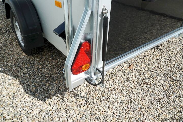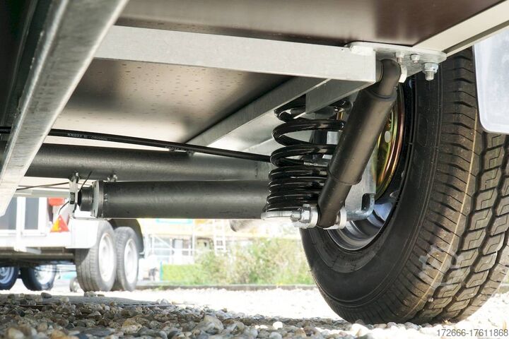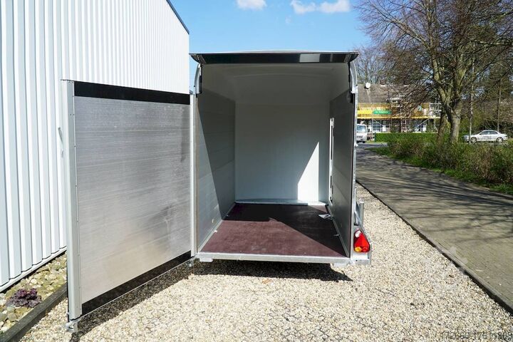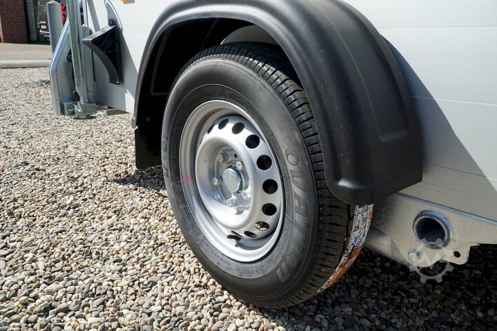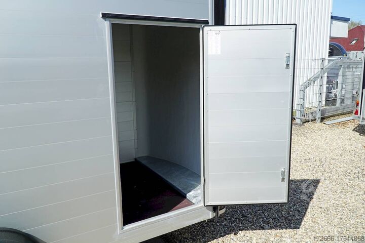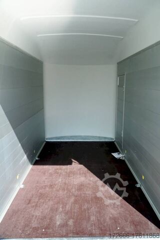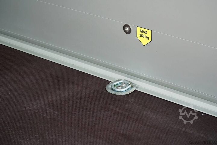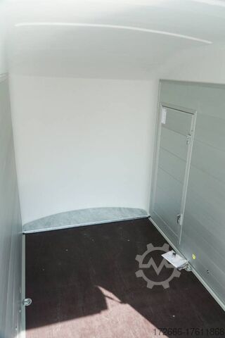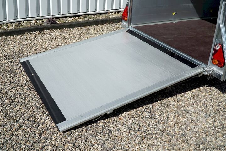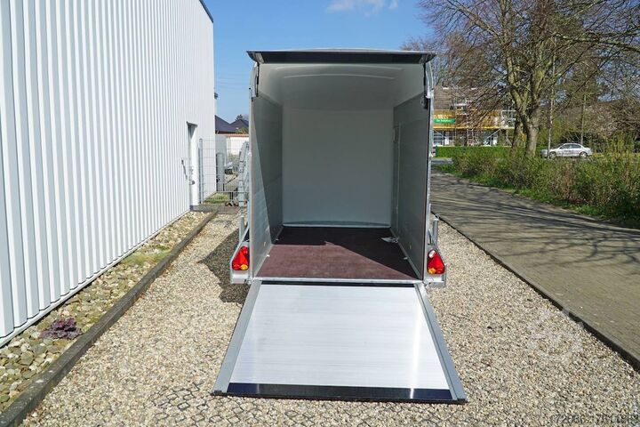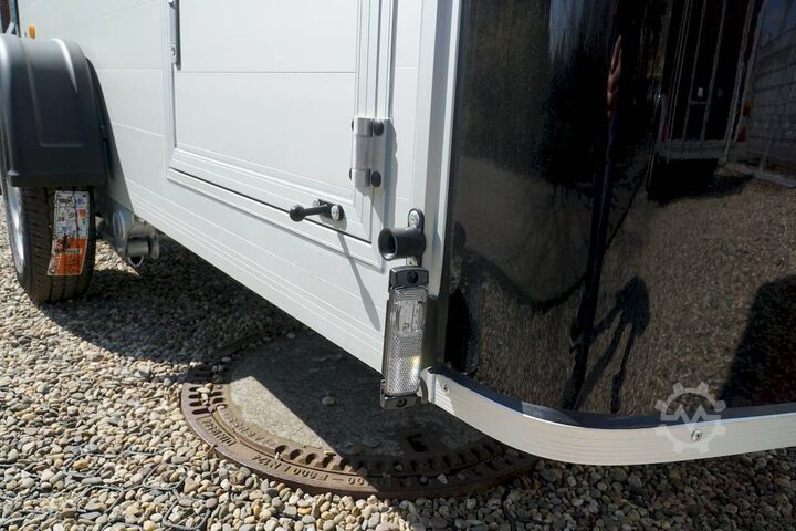 Hydraulics, automatic reverse drive, hot-dip galvanized, unbraked, aluminium body / side door / 100 km/h / tailgate hinged door, * IMMEDIATELY AVAILABLE * Aluminium body / side door / 100 km/h / tailgate hinged door Body color: black Technical data: - Type: New vehicle - TÜV: New/2 years - Availability: * IMMEDIATELY AVAILABLE * - Gross vehicle weight: 1,300 kg - Unladen weight: 460 kg - Payload: 840 kg - Interior dimensions: 303 x 150 x 197 cm (L x W x H) - Overall exterior dimensions: 425 x 205 x 231 cm (L x W x H) - Loading sill height: 35 cm - Brake: yes - Support wheel: yes - Automatic - 100 km/h: included! - incl. vehicle documents Vehicle superstructure: - Floor: Wood, Finnish multiplex board - Side walls/body: Anodized aluminium double-walled - Roof material: Full polyester - Chassis: Pullman2 independent suspension with coil spring and shock absorber - Number of lashing eyes: 4 pieces - Tailgate: Yes - Tailgate material: Aluminium anti-slip, approx. 500kg load capacity - Tailgate function: Hinged door and tailgate combination - Interior light: Yes, with switch - Supports: Yes, 2 pieces - Overrun device & brake: KNOTT - Frame/chassis: Welded hot-dip galvanized steel frame - Lighting plug: 13-pin - Approval: COC papers Standard equipment: - Double-walled and anodized aluminium side walls - Finnish multiplex wooden floor with screen-printed coating - Full poly roof and front available in anthracite or black - Interior full height: approx. 190cm - Interior full width: approx. 148cm - Drive-on flap made of aluminum lockable with optional lock - Drive-on flap as flap / door system (can be used as flap or door) - Lashing eyes mounted on floor - Interior light - Torsion-resistant chassis - Sturdy cross members for high point loading - PULLMAN2 chassis Independent wheel suspension with trailing arm, coil spring and shock absorber lowered with very low centre of gravity and galvanized - 100km/h with manufacturer's certificate - automatic reversing - Knott overrun device and parking brake - sturdy V-drawbar - plastic mudguards - 13-pin plug - reversing light - large rear lights plug - reversing lights - large safety lighting - integrated rear fog light - automatic center support wheel - body only splash-proof - registration papers: COC papers Special equipment included in the price: - Lockable front right side door Accessories can be retrofitted - please enquire: - Motorcycle rockers, - Motorcycle stand rails, - Motorcycle lashing straps, - Lashing straps - Additional lashing eyes - Slot-and-hole rails for tensioning straps & locking beams - Rod strip with rubber coating for tensioning straps & locking beams - Steel or aluminum locking beams - Interior lights - Reversing lights - and much more. New vehicle with warranty and TÜV. We are happy to offer you suitable financing !, Descriptions and pictures are protected by copyright !!! Over 800 trailers immediately available for you! We are for over 30 years Brian James / Humbaur / Hapert / Unsinn / Cheval Liberte / Koch / Debon / Stedele / TPV / Tohaco / Vezeko / Variant / Vlemmix - specialized dealer & repair - workshop - delivery Germany-wide with surcharge possible! Anhänger Zentrum BAUMANN GmbH Dinxperloer Str. 389 46399 Bocholt - Errors, omissions and prior sale excepted -
