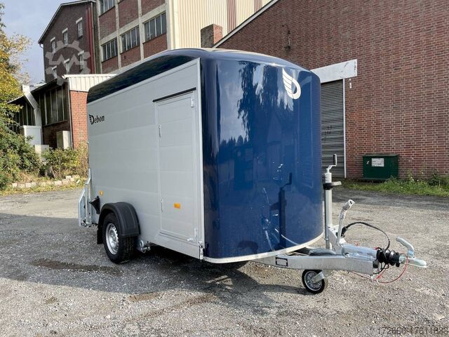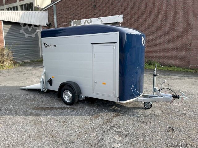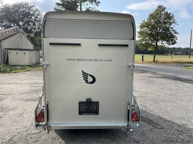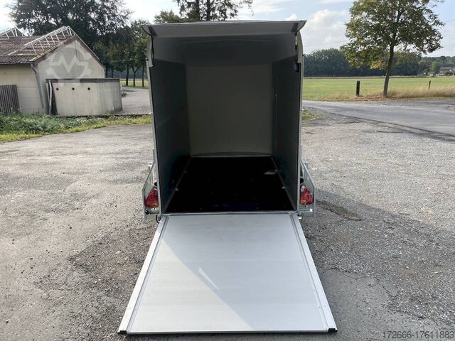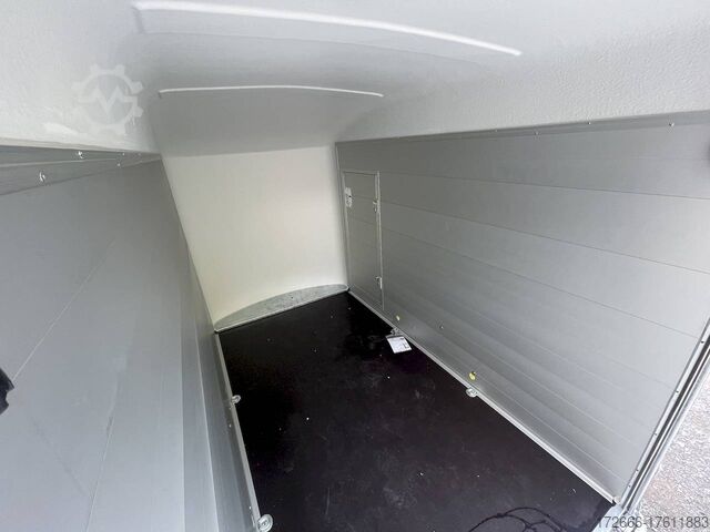 Hydraulics, automatic reverse drive, hot-dip galvanized, unbraked, aluminium body / side door / 100 km/h / tailgate hinged door, * IMMEDIATELY AVAILABLE * Aluminium body / side door / 100 km/h / tailgate hinged door Body color: blue Technical data: - Type: New vehicle - TÜV: New/2 years - Availability: * IMMEDIATELY AVAILABLE * - Gross vehicle weight: 1,300 kg - Unladen weight: 460 kg - Payload: 840 kg - Interior dimensions: 303 x 150 x 197 cm (L x W x H) - Overall exterior dimensions: 425 x 205 x 231 cm (L x W x H) - Loading sill height: 35 cm - Brake: yes - Support wheel: yes - Automatic - 100 km/h: included! - incl. vehicle documents Vehicle superstructure: - Floor: Wood, Finnish multiplex board - Side walls/body: Anodized aluminium double-walled - Roof material: Full polyester - Chassis: Pullman2 independent suspension with coil spring and shock absorber - Number of lashing eyes: 4 pieces - Tailgate: Yes - Tailgate material: Aluminium anti-slip, approx. 500kg load capacity - Tailgate function: Hinged door and tailgate combination - Interior light: Yes, with switch - Supports: Yes, 2 pieces - Overrun device & brake: KNOTT - Frame/chassis: Welded hot-dip galvanized steel frame - Lighting plug: 13-pin - Approval: COC papers Standard equipment: - Double-walled and anodized aluminium side walls - Finnish multiplex wooden floor with screen-printed coating - Full poly roof and front available in anthracite or black - Interior full height: approx. 190cm - Interior full width: approx. 148cm - Drive-on flap made of aluminum with optional lock lockable - Drive-on flap as flap / door system (can be used as flap or door) - Lashing eyes mounted on floor - Interior light - Torsion-resistant chassis - Sturdy cross members therefore high point load - PULLMAN2 chassis Independent wheel suspension with trailing arm, coil spring and shock absorber lowered with very low centre of gravity and galvanized - 100km/h with manufacturer's certificate - automatic reversing - Knott overrun device and parking brake - stable V-drawbar - plastic mudguards - 13-pin plug - reversing light - large rear lights plug - reversing lights - large safety lighting - integrated rear fog light - automatic center support wheel - body only splash-proof - registration papers: COC papers Special equipment included in the price: - Lockable front right side door Accessories can be retrofitted - please enquire: - Motorcycle rockers, - Motorcycle stand rails, - Motorcycle lashing straps, - Lashing straps - Additional lashing eyes - Slot-and-hole rails for lashing straps & locking bars - Rod strip with rubber coating for lashing straps & locking bars - Steel or aluminum locking bars - Interior lights - Reversing lights - and much more. New vehicle with warranty and TÜV. We are happy to offer you suitable financing !, Descriptions and pictures are protected by copyright !!! Over 800 trailers immediately available for you! We are for over 30 years Brian James / Humbaur / Hapert / Unsinn / Cheval Liberte / Koch / Debon / Stedele / TPV / Tohaco / Vezeko / Variant / Vlemmix - specialized dealer & repair - workshop - delivery Germany-wide with surcharge possible! Anhänger Zentrum BAUMANN GmbH Dinxperloer Str. 389 46399 Bocholt - Errors, omissions and prior sale reserved -