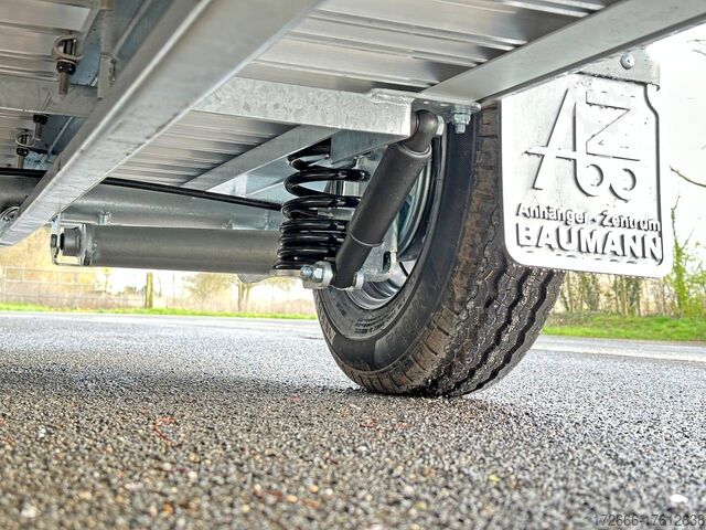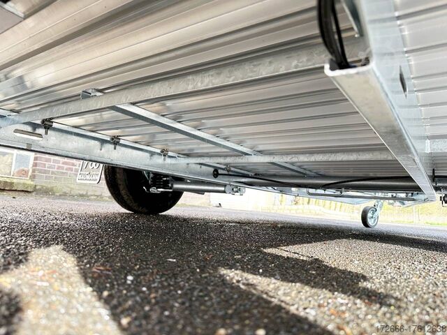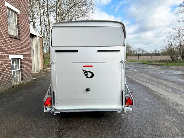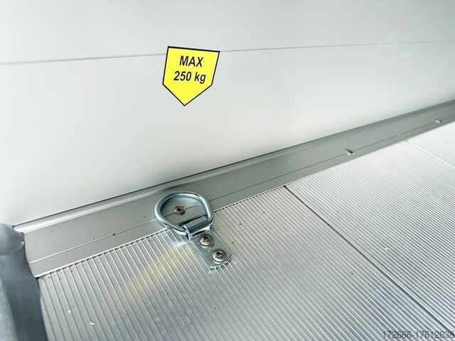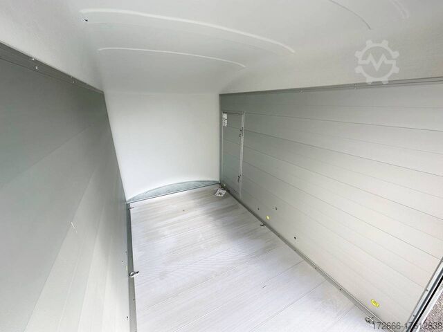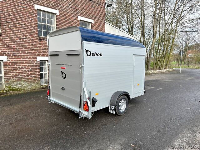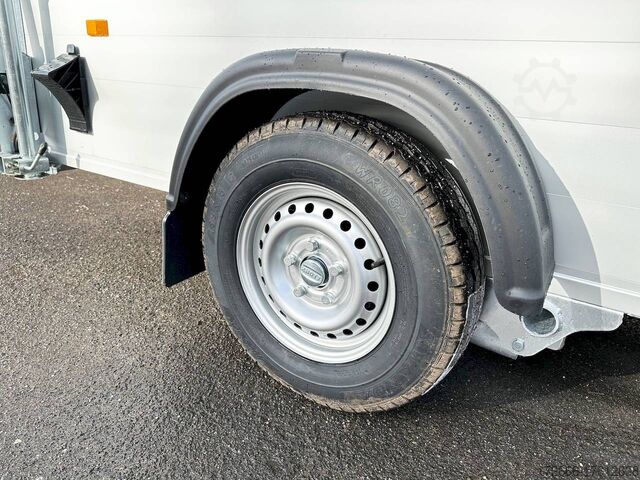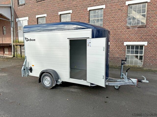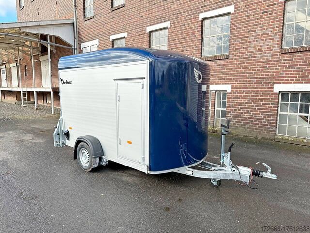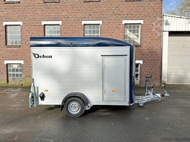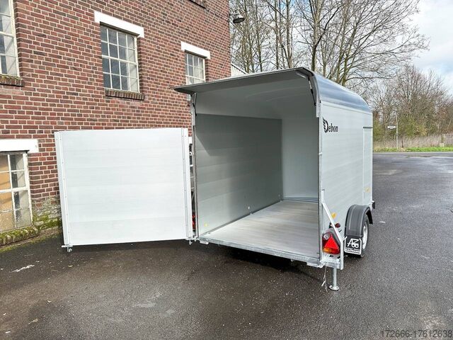Hydraulics, automatic reverse drive, hot-dip galvanizing, unbraked, aluminium body / side door / 100km/h / tailgate hinged door, * IMMEDIATELY AVAILABLE * incl. Aluminum body / side door / 100km/h / tailgate hinged door Body color: Dark blue TECHNICAL DATA: - Make: Debon - Model: Roadster C400 Alu - Vehicle type: Box trailer - Vehicle condition: New vehicle - Initial registration: Without initial registration - TÜV/HU: 2 years from initial registration - Interior dimensions (L x W x H): 313 x 167 x 201 cm - Exterior dimensions (L x W x H): 445 x 215 x 237 cm - Floor loading height: 35 cm - Perm. Total weight: 1,300 kg - Unladen weight: 540 kg - Payload: 760 kg - Chassis: Low loader (wheels next to the body) - Tires: 165R13C - Chassis: Pullman2 coil spring - Support wheel: Yes, automatic - 100km/h approval: Yes EQUIPMENT - Brakes: Yes - Number of axles: 1 - Floor: Aluminum floor - Walls Material: Anodized aluminum double-walled - Roof material: full polyester - Through-loading height: 200 cm - Through-loading width: 164 cm - Through-loading length: 275 cm - Color: black - Number of pallet spaces: 4 - Tipping / lowering function: Without - Overrun device/brake: KNOTT - Frame/chassis: Welded steel frame - Galvanization: Hot-dip galvanized - Drawbar: V-drawbar, continuous, C-profile - Mudguards: Plastic mudguards - Side door: Yes - Side flap: No - Rear doors / tailgate: Rear doors, tailgate - Rear door / tailgate material: Aluminium - Tailgate load: approx. 500 kg - Rear passage dimensions: 163 x 188 cm - Locks for box body: Angle lever locks - Drive-on angle: approx. 13 - Supports: Optional, can be retrofitted - Lashing rails: Optional, can be retrofitted - Lashing eyes: 6 - Interior light: Yes, rear - Rear lighting: Incandescent bulbs, lamps recessed in side struts - Side lighting: Rear top position lights - Plug for lighting: 13-pin - Vehicle documents: COC papers DESCRIPTION - Double-walled and anodized aluminium drop sides - Anodized aluminium floor - Full poly roof and front in color - Interior through height: approx. 188cm - Interior through width: approx. 160cm - Aluminum drive-on flap lockable with optional lock - Drive-on flap as flap / door system (can be used as flap or door) - Lashing eyes mounted on floor - Interior light - Torsion-resistant chassis - Sturdy cross beams for high point loading - PULLMAN V2 chassis independent wheel suspension - 100km/h with manufacturer's certificate - Automatic reverse drive - Knott overrun device and parking brake - Sturdy V-drawbar - Plastic mudguards - 13-pin plug - Reversing light - Large rear lights - Large rear lights plug - reversing light - large safety lighting - integrated rear fog light - automatic center support wheel - side door 125x60cm, front right, lockable New vehicle with warranty and TÜV. We are happy to offer you suitable financing !, Descriptions and pictures are protected by copyright !!! Over 800 trailers immediately available for you! We are for over 30 years Brian James / Humbaur / Hapert / Unsinn / Cheval Liberte / Koch / Debon / Stedele / TPV / Tohaco / Vezeko / Variant / Vlemmix - specialized dealer & repair - workshop - delivery Germany-wide with surcharge possible! Anhänger Zentrum BAUMANN GmbH Dinxperloer Str. 389 46399 Bocholt - Errors, omissions and prior sale reserved -