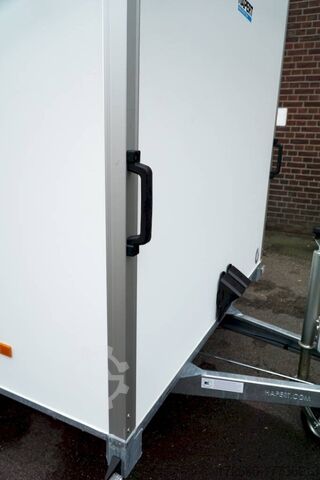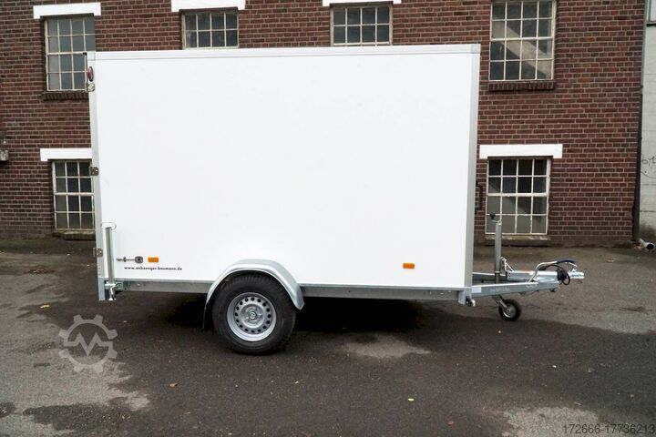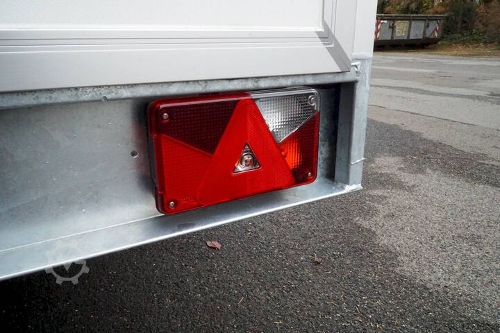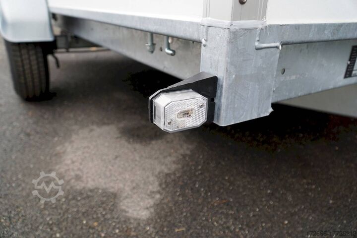 Hydraulics, automatic reversing, hot-dip galvanizing, * IMMEDIATELY AVAILABLE * Technical data: - Type: New vehicle with 2 years TÜV from first registration - Availability: IMMEDIATELY! - TÜV: 2 years - Floor: Multiplex screen printing with anti-slip surface - Gross vehicle weight: 2,700 kg - Unladen weight: approx. 689 kg - Interior dimensions: 300 x 180 x 180 cm (L x W x H) - Loading sill height: approx. 53 cm - Tires: 185R14C - Brakes: yes - Support wheel: yes, automatic - Incl. vehicle documents (letter) - 100 km/h: at extra charge Standard equipment: - Wooden floor and side walls made of multiplex - Very sturdy welded steel frame - Frame completely hot-dip galvanized - Many sturdy cross members, therefore high point load - Continuous side members - Frame very torsion-resistant due to its sturdy construction - 6 lashing brackets recessed inside the side edge - TÜV certified to 1000daN / kg - Interior light - 2 -wing. Rear door lockable with VA espagnolette lock - 2 maneuvering handles at the front - maintenance-free rubber spring axles from BPW - automatic reversing - BPW overrun device and parking brake - very sturdy bolted V-drawbar - 13-pin plug - large safety lighting with reversing light - integrated rear fog light - lighting recessed in the rear frame - automatic support wheel Special equipment included in the price: - ABS 15 mm walls. (extremely smooth coating) - The extremely smooth coating of these panels greatly simplifies any labeling of the trailer Accessories optionally available: ? Rear supports mounted, the pair ? 100km/ approval with wheel shock absorbers ? ? lashing rails, anchor rails, additional load securing, locking beams, tension belts, etc. You can pay us in cash or by bank transfer before collection. - Financing or leasing possible - Delivery possible nationwide - All prices include VAT. - Vehicle registration documents can be sent in advance or transfer license plates (Germany) can be provided. - Export license plates incl. customs declaration possible New vehicle with warranty and TÜV. We are happy to offer you suitable financing !, Descriptions and pictures are protected by copyright !!! Over 800 trailers immediately available for you! We are for over 30 years Brian James / Humbaur / Hapert / Unsinn / Cheval Liberte / Koch / Debon / Stedele / TPV / Tohaco / Vezeko / Variant / Vlemmix - specialized dealer & repair - workshop - delivery Germany-wide with surcharge possible! Anhänger Zentrum BAUMANN GmbH Dinxperloer Str. 389 46399 Bocholt - Errors, omissions and prior sale excepted -