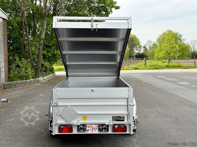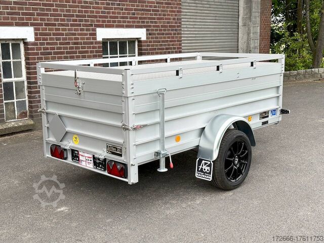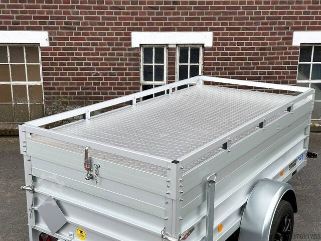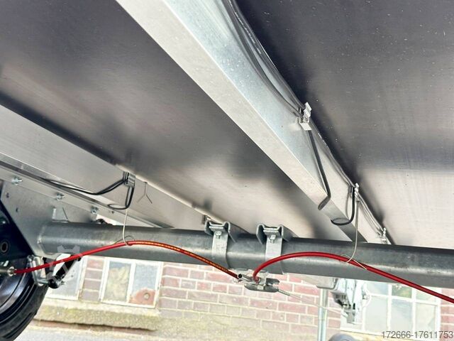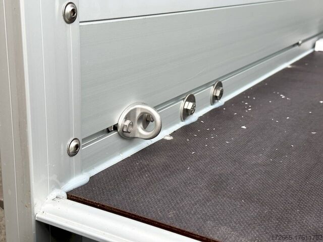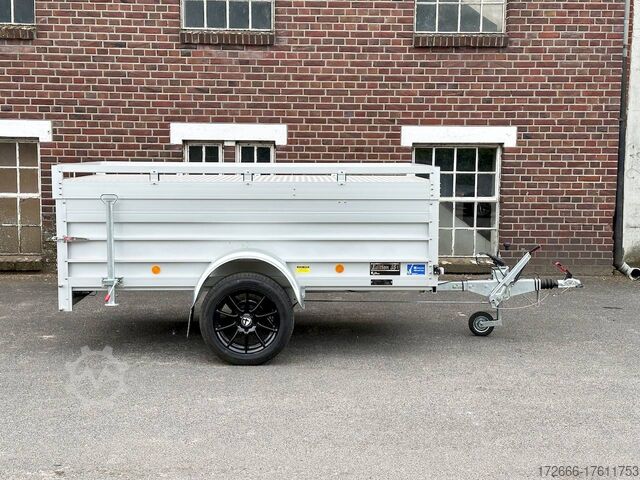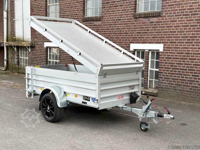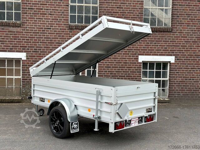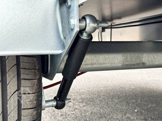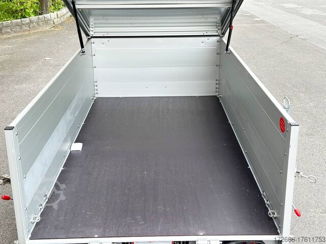 Hydraulics, automatic reverse drive, hot-dip galvanizing, roof window, * IMMEDIATELY AVAILABLE * TECHNICAL DATA: - Make: Koch trailer - Model: 4.13 - Vehicle type: Cover trailer - Vehicle condition: New vehicle - Initial registration: Without initial registration - TÜV/HU: 2 years from initial registration - Internal dimensions (L x W x H): 250 x 125 x 65 cm - External dimensions (L x W x H ): 383 x 179 x 132 cm - Loading height of floor: 50 cm - Gross vehicle weight: 1,300 kg - Unladen weight: 324 kg - Payload: 976 kg - Chassis: Low loader (wheels next to body) - Tires: 205/55R16 - Chassis: ALKO rubber suspension axle - Support wheel: Yes - 100km/h approval: Yes EQUIPMENT: - Brake: Yes - Number of axles: 1 - Floor: Wooden floor - Drop sides: Double-walled anodized aluminium - Drop side height: 60 cm - Drop sides foldable: Rear drop side - Drop side hinges: 2 at the rear, bolted - Drop side elevations: 1 - Locks: Eccentric locks - Railing: Yes - Number of pallet spaces: 3 - Lid: Yes - Lid stop side: Front - Lid load: Heavy-duty, on the railing - Rear opening with closed lid: No - Bicycle carrier / lid: No Bicycle carrier / surf rack: Optional, can be retrofitted - Overrun device/brake: ALKO - Frame/chassis: Steel side member, bolted - Galvanization: Hot-dip galvanized - Drawbar: Tubular drawbar - Drawbar length: 125 cm - Mudguards: Steel mudguards - Rear doors / tailgate: Tailgate - Load ramps: - - Drive-on angle: - - Supports: Optional, can be retrofitted - Lashing eyes: 4 - Rear lighting: bulbs, lamps recessed in rear frame - Side lighting: - - Plug for lighting: 13-pin - Vehicle documents: ZBII & COC papers DESCRIPTION: - Dropside height 60 cm + lid height 5 cm - Double-walled anodized aluminium dropside 30 mm, with integrated aluminium frame - Dropside with load securing system Accessories such as, lashing eyes can be easily fitted without drilling. - Stainless steel lashing rings (V2A stainless steel) - Stable screen-printed floor, non-slip (birch wood, (birch wood, waterproof glued) - Very sturdy V2A stainless steel latches for the tailgate (unique) - Lid can be opened from the rear - 2 sturdy V2A stainless steel hinges at the front - Sturdy aluminium lid with aluminium corrugated cover plate can be walked on - 8 mm V2A screw connection - Sturdy lid railing - Optional cross member set can be mounted on railing - Sturdy V2A lid lock at the rear with disc lock - 2 gas springs for easy opening - Lid can be easily removed - Maintenance-free hot-dip galvanized rubber spring axle - Chassis and drawbar from renowned manufacturer ALKO - Safety indicator on the coupling - Steel mudguards - Tailgate can be easily removed - 13-pin plug - Reversing lights - Large reversing lights plug - reversing lights - large safety lighting - integrated rear fog light - lighting recessed in the rear frame - fitted with balanced 1A brand tires as standard - large 205/55 R16 inch tires balanced on black aluminium rims and capable of 100 km/h - all M8 stainless steel (V2A stainless steel) screw fittings - clear operating sign with the most important data (tire pressure, cable assignment...) - including 10-year Koch warranty - black wedges with holder at the front instead of red New vehicle with warranty and TÜV. We are happy to offer you suitable financing !, Descriptions and pictures are protected by copyright !!! Over 800 trailers immediately available for you! We are for over 30 years Brian James / Humbaur / Hapert / Unsinn / Cheval Liberte / Koch / Debon