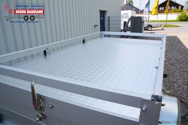 Hydraulics, automatic reverse drive, hot-dip galvanizing, roof window, * IMMEDIATELY AVAILABLE * Technical data: - Type: New vehicle - Availability: Immediately!!! - TÜV: 3 years from first registration - Floor: Multiplex screen printing with anti-slip surface - Gross vehicle weight: 750 kg - Unladen weight: 195 kg - Payload: 555 kg - Internal dimensions: 205 x 105 x 65 cm (L x W x H) - External dimensions: 306 x 155 x 132 cm (L x W x H) - Loading sill height: 50 cm - Tyres: 185/70R13 - Brakes: no - Support wheel: at extra charge - 100km/h: INCLUDED !!! - incl. vehicle documents (letter) Standard equipment: - Double-walled anodized aluminium drop sides 30 mm, with integrated aluminium frame - Drop side with load securing system Accessories such as lashing eyes can be easily mounted without drilling. - Stainless steel lashing rings (V2A stainless steel) - Sturdy screen-printed floor plate, non-slip (birch wood, waterproof glued) - Very sturdy locks for the tailgate made of V2A stainless steel (unique) - Maintenance-free, hot-dip galvanized rubber spring axle - Chassis and drawbar from renowned manufacturer ALKO - Safety indicator on the coupling - Steel mudguards - Tailgate can be easily removed - 13-pin plug - Reversing lights - Large reversing light - Steel mudguards plug - reversing light - large safety lighting - integrated rear fog light - lighting recessed in the rear frame - fitted with balanced 1A brand tires as standard - M8 stainless steel (V2A stainless steel) screw connection - clear operating sign with the most important data (tire pressure, cable assignment...) - incl. transfer costs - incl. vehicle registration document Special equipment included in the price: - Side wall height 60 cm + cover height Sturdy aluminum cover with aluminum corrugated cover plate accessible Sturdy cover railing Indestructible cover closure with discus lock Cover is easily removable 2 x gas springs for easy opening and closing - Cross racks for bicycle carriers, surfboards and similar are available on request. New vehicle with warranty and TÜV. We are happy to offer you suitable financing !, Descriptions and pictures are protected by copyright !!! Over 800 trailers immediately available for you! For more than 30 years we are Brian James / Humbaur / Hapert / Unsinn / Cheval Liberte / Koch / Debon / Stedele / TPV / Tohaco / Vezeko / Variant / Vlemmix - Specialized dealer & repair workshop - Delivery throughout Germany possible with surcharge! Anhänger Zentrum BAUMANN GmbH Dinxperloer Str. 389 46399 Bocholt - Errors, omissions and prior sale excepted -