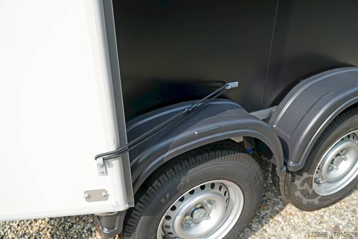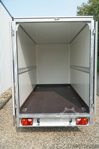 Hydraulics, automatic reversing, hot-dip galvanizing, unbraked, tandem with sheet steel sandwich body 30 mm walls, braked, 2 lashing rails, 4 lashing eyes, * IMMEDIATELY AVAILABLE * Tandem with sheet steel sandwich body 30 mm walls, braked, 2 lashing rails, 4 lashing eyes Technical data: - Type: New vehicle - TÜV: New/2 years - Availability: IMMEDIATELY! - Gross vehicle weight: 2,700 kg - Unladen weight: 655 kg - Payload: 2,045 kg - Interior dimensions: 305 x 152 x 193 cm (L x W x H) - Overall exterior dimensions: 455 x 205 x 256 cm (L x W x H) - Loading sill height: 59 cm - Tires: 185R14C steel rim - Brakes: yes - Support wheel: yes - 100 km/h: at extra charge - Incl. vehicle documents Vehicle body: - Floor: Wood, Finnish multiplex board - Walls: 30mm sheet steel sandwich - Roof material: 25mm GRP sandwich - Chassis: ALKO rubber spring axle - Number of lashing eyes: 4 pieces (750kg/daN) - Rear door: yes, double-leaf - Tailgate: no - Tailgate material: - - Tailgate/door function: espagnolette lock - Clearance dimension tailgate/flap: - Interior light: at extra charge - Supports: at extra charge - Overrun device & brakes: yes - Rear door: yes - 100km/h: at extra charge - incl. vehicle documents Overrun device & brake: yes, - Frame/chassis: V-drawbar, hot-dip galvanized - Lighting plug: 13-pin - Registration papers: COC papers Standard equipment: - stable V-drawbar, hot-dip galvanized - tandem axle - overrun device from ALKO - floor panel made of Finnish multiplex - side walls made of very solid sheet steel sandwich, 30 mm thick - roof made of GRP sandwich 25mm - 2-leaf rear doors - doors with special sealing profiles, made of hard/soft plastic - stainless steel espagnolette lock and hinges galvanized - rear frame and edging profiles made of special aluminium profiles - 4 lashing points in the floor, 750 kg lashing force - trailer has pre-mounted lashing strip on both sides - automatic jockey wheel - automatic reversing - plastic mudguards - 13-pin plug - reversing lights - large rear lights - large rear lights - large rear lights - large rear lights - large rear lights - large rear lights - large rear lights - large rear lights - large rear lights - large rear lights - large rear lights - large rear lights - large rear lights - large rear lights - large rear lights - large rear lights - large rear lights - large rear lights - large rear lights - large rear lights plug - reversing lights - large safety lighting - integrated rear fog light - body: splash-proof - registration papers: COC papers Accessories can be retrofitted - please enquire: - anti-theft device - rear supports - 100km/H approval with wheel bumper - side door - motorcycle rockers, - motorcycle stand rails, - motorcycle lashing straps, - lashing straps - additional lashing eyes - additional slot-and-hole rails for tensioning straps & locking bars - bar strip with rubber coating for tensioning straps & locking bars - steel or aluminum locking bars - interior lights - reversing lights - and much more. New vehicle with warranty and TÜV. We are happy to offer you suitable financing !, Descriptions and pictures are protected by copyright !!! Over 800 trailers immediately available for you! We are for over 30 years Brian James / Humbaur / Hapert / Unsinn / Cheval Liberte / Koch / Debon / Stedele / TPV / Tohaco / Vezeko / Variant / Vlemmix - specialized dealer & repair - workshop - delivery Germany-wide with surcharge possible! Anhänger Zentrum BAUMANN GmbH Dinxperloer Str. 389