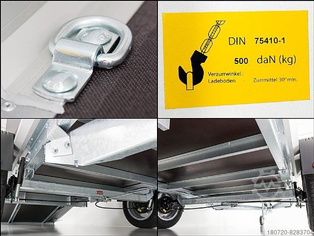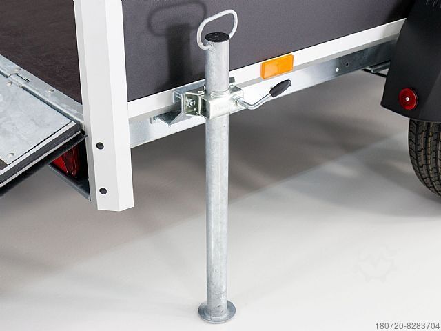 With a payload of 935 kg and an unladen weight of 365 kg, the car trailer offers the optimum weight for carrying out numerous transports. Are you considering buying a box trailer with an overrun brake? The Black Edition is your optimal and perfect choice. It also has a stable, maintenance-free rubber spring axle system and offers a rear ramp with lockable lock for loading. With its bright white interior color, the car trailer impresses in every respect, whereby you can drive the Black Edition a little faster on the freeways thanks to the 100 km/h approval. What are you waiting for? Get the box trailer or have your Black Edition delivered today and, thanks to the box material Plywood, you can look to the future with confidence and buy this box trailer.
