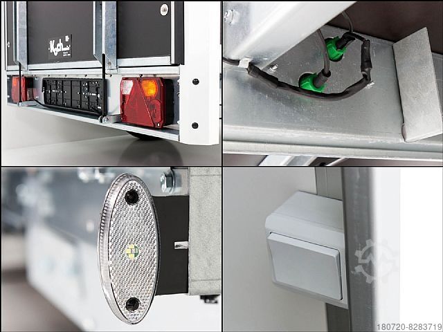 With a payload of 935 kg and an unladen weight of 365 kg, the car trailer offers the optimum weight for carrying out numerous transports. Are you considering buying a box trailer with an overrun brake? The Black Edition is your optimal and perfect choice. It also has a stable, maintenance-free rubber spring axle system and offers two rear doors with a lockable espagnolette lock for loading. With its bright white interior color, the car trailer impresses in every respect, whereby you can drive the Black Edition a little faster on the freeways thanks to the 100 km/h approval. What are you waiting for? Get the box trailer or have your Black Edition box conveniently delivered.