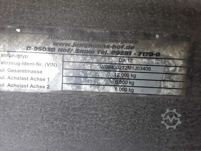 Unladen weight: 3980 kg, permissible total weight: 12000 kg, loading space (L W H): 7210 mm x 2460 mm x 2400 mm, tire size: 265/70 R17.5, loading space volume: 42 m³, 1st axle: , 2nd axle: , air-air suspension, tail lift, electronic braking system EBS, telematics system, battery box including bracket and 2 batteries, trailer charging cable including spiral connection cable, errors and changes excepted. Vehicle location: Hof/Bavaria. This vehicle can also be rented to businesses based in Germany.