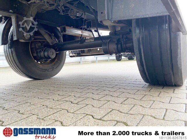 Wheelbase: 5020 mm Body: Orten Kettliner-Light type turntable swivel wall trailer with load securing 2x 10t SAF axles, disc brakes, chassis frame made of high-quality steel profiles in lightweight construction, floor made of 27mm screen-printed plywood, front wall made of aluminum profiles, Double-wing rear wall doors in aluminium, GRP roof skin with galvanized roof frame construction, movable rear load securing system "allsafe-Jungfalk CRS", mounting device for truck-mounted forklift, loading sill height unloaded approx. 1280mm, side loading height approx. 2180mm,