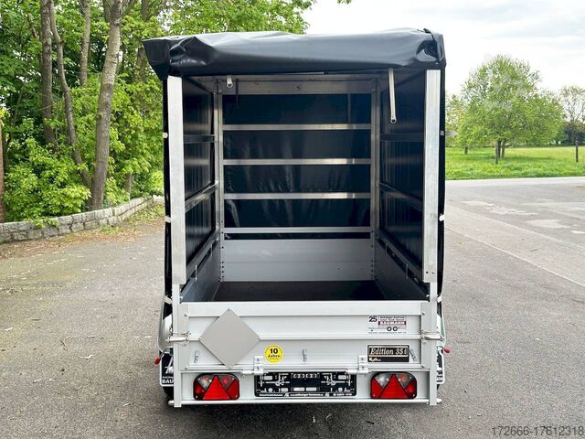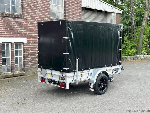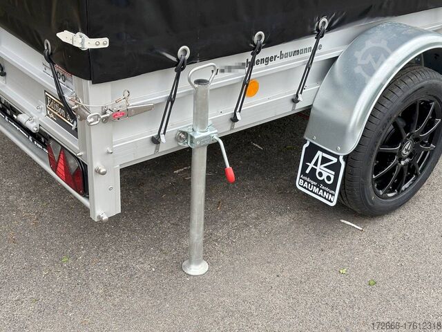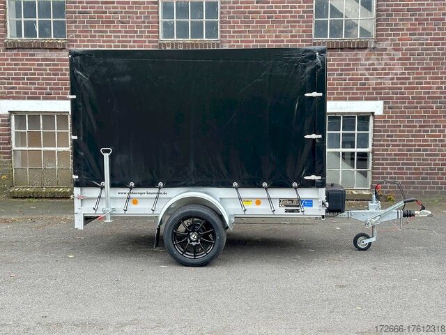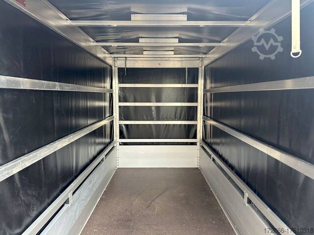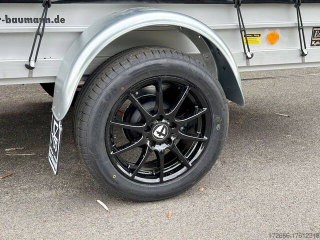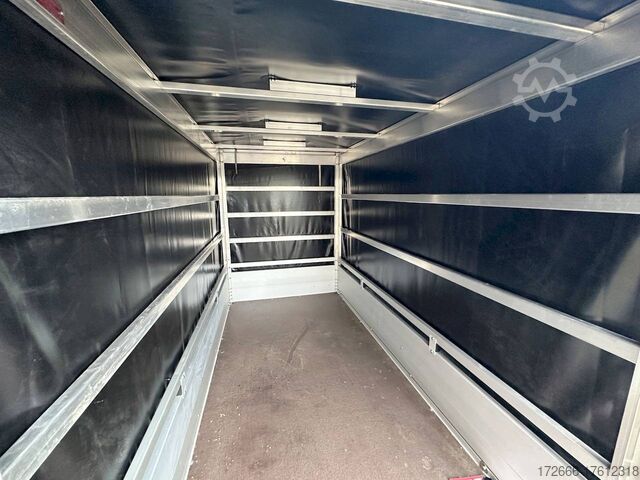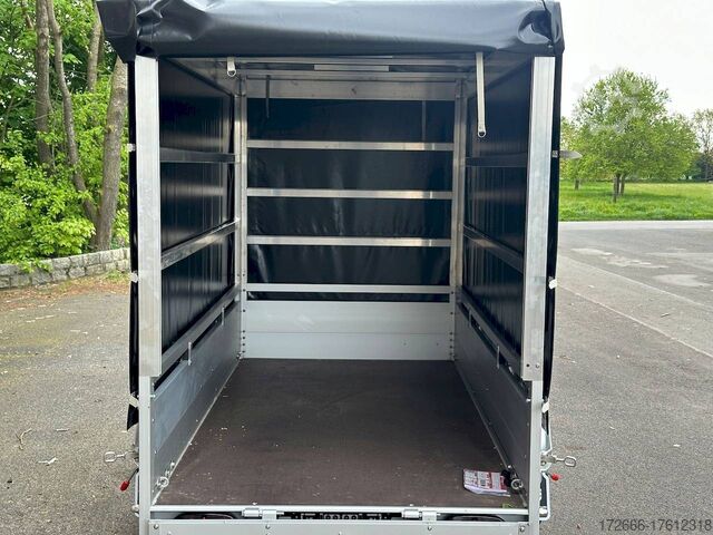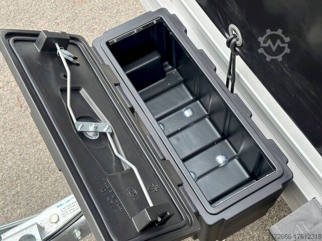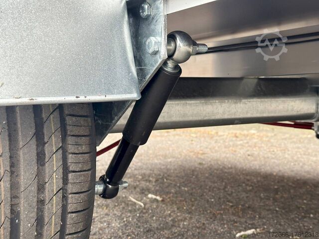 Hydraulics, automatic reverse, hot-dip galvanized, unbraked, * IMMEDIATELY AVAILABLE * Technical data: - Make: Koch trailer - Model: 4.13 - Vehicle type: Tarpaulin trailer - Vehicle condition: New vehicle - First registration: Without first registration - TÜV/HU: 2 years from first registration - Internal dimensions (L x W x H): 250 x 125 x 160 cm - External dimensions (L x W x H): 383 x 179 x 222 cm - Loading height of floor: 50 cm - Perm. Total weight: 1,300 kg - Unladen weight: 240 kg - Payload: 1,060 kg - Chassis: Low loader (wheels next to the body) - Tyres: 205/55R16 - Chassis: ALKO rubber spring axle - Support wheel: Yes - 100 km/h approval: Yes Description: - Double-walled anodized aluminium drop sides 30 mm, with integrated aluminium frame - Dropside with load securing system Accessories such as lashing eyes can be easily mounted without drilling. - Stainless steel (V2A stainless steel) lashing lugs - Elaborate longitudinal beams (2 longitudinal beams) - Base plate stable screen-printed floor, non-slip (birch wood, (birch wood, waterproof glued) - very stable locks for the tailgate made of V2A stainless steel (unique) - maintenance-free, hot-dip galvanized rubber spring axle - wheel shock absorbers + 100km/h approval - ALKO overrun device and parking brake - chassis and drawbar from renowned manufacturer ALKO - automatic reverse - brake cables with Profi-Longlife (plastic coating of the steel wire strands) - 2x wheel chocks with bracket - fitted with balanced 1A brand tires as standard - large 205/55 R16 aluminium rims with black tires, balanced and capable of 100 km/h - safety indicator on the coupling - steel mudguards - tailgate can be easily removed - 13-pin plug - reversing light - large rear lights plug - reversing lights - large safety lighting - integrated rear fog light - lighting recessed in the rear frame - M8 stainless steel (V2A stainless steel) screw connection - clear operating sign with the most important data (tire pressure, cable assignment ...) - Koch Profi high tarpaulin 160cm - original Koch, black - tarpaulin incl. removable aluminum frame - incl. hook set and tarpaulin rubbers - incl. 2x rear supports mounted - front storage box on the drawbar - including 10-year Koch warranty New vehicle with warranty and TÜV. We are happy to offer you suitable financing !, Descriptions and pictures are protected by copyright !!! Over 800 trailers immediately available for you! We are for over 30 years Brian James / Humbaur / Hapert / Unsinn / Cheval Liberte / Koch / Debon / Stedele / TPV / Tohaco / Vezeko / Variant / Vlemmix - specialized dealer & repair - workshop - delivery Germany-wide with surcharge possible! Anhänger Zentrum BAUMANN GmbH Dinxperloer Str. 389 46399 Bocholt - Errors, omissions and prior sale excepted -