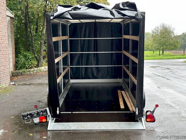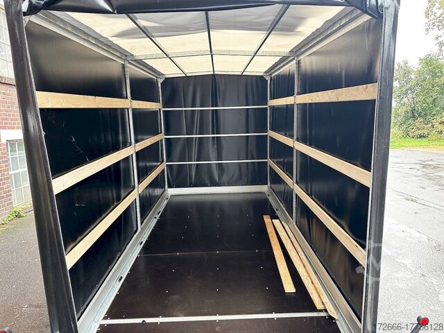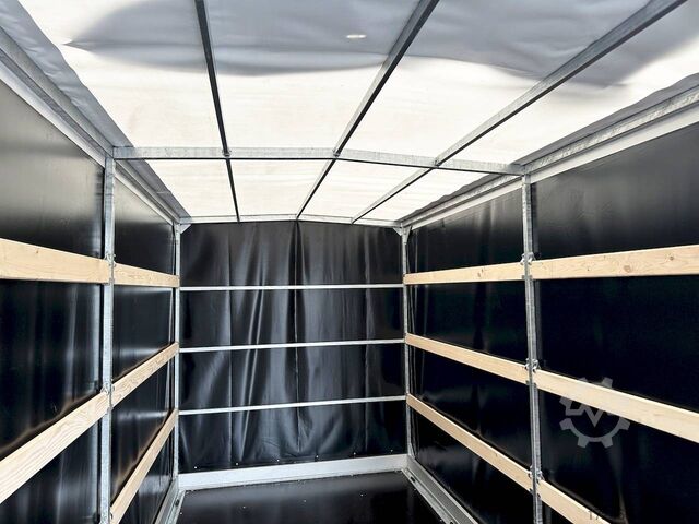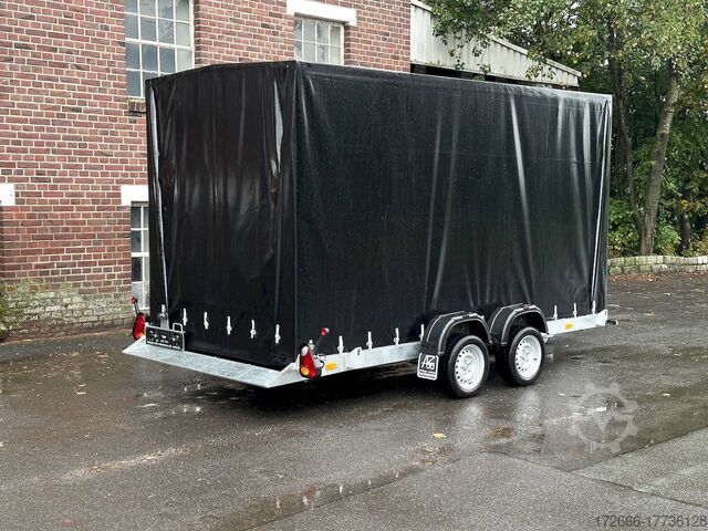 lowerable loading area / high tarpaulin 210cm / manual hydraulics / braked, automatic reversing, hot-dip galvanizing, * IMMEDIATELY AVAILABLE * incl. lowerable loading area / high tarpaulin 210cm / manual hydraulics / braked Technical data: - Type: New vehicle - TÜV: New/2 years - Availability: IMMEDIATELY! - Gross vehicle weight: 2,700kg - Unladen weight: 705 kg - Payload: 1,995 kg - Interior dimensions: 394 x 183 x 210 cm (L x W x H) - Overall exterior dimensions: 553 x 254 x 264 cm (L x W x H) - Loading sill height: 44 cm - Tires: 195/50R13C steel rim - Brake: yes - Support wheel: yes, 45mm with clamp - 100km/h: at extra charge - incl. Vehicle documents Vehicle superstructure: - Floor: Multiplex wooden floor - Drop sides: Aluminium anodized 3-sided - Drop side height: 10cm - Chassis: Low loader lowerable, ALKO rubber spring axle - Tipping function: lowerable - Hydraulics: Hand pump - Drive-on angle: approx. 6 - Wheel stopper: without - Overrun device & brake: ALKO - Frame/chassis: Welded hot-dip galvanized steel frame - Lashing eyes: 10 pieces recessed on the side - Winch: at extra charge - Supports: Supported by rear. - Ramps: with rear drive-over point - Lighting plug: 13-pin - Approval: COC papers Standard equipment: - Multiplex wooden floor - Extremely robust - Fixed 10 mm drop sides - Insertion options at all corners, e.g. for tarpaulin frame - Very sturdy welded steel frame - Frame completely hot-dip galvanized frame completely hot-dip galvanized - many stable cross beams therefore high point load - loading area can be lowered hydraulically - mechanical safety locking of the swivel axle in driving mode - with drive-over point at the rear - additional longitudinal struts welded in throughout - storage box at the front - 10 lashing eyes inside the loading area - license plate holder at the rear, can be swivelled away for loading - ALKO overrun device and parking brake - ALKO coupling head - very stable V-drawbar REINFORCED - automatic reversing - 13-pin plug - reversing lights - large reversing lights - large rear lights - rear view mirror - large rear view mirror - large rear view mirror. plug - reversing lights - generously dimensioned safety lighting - integrated rear fog light - lighting recessed in rear frame - support wheel with central clamp - registration papers: COC papers Special equipment included in the price: - Original Vezeko tarpaulin and bows 210 cm. high - color black (other colors optionally possible) - mounting tarpaulin system accessories can be retrofitted - please inquire: - 100km/h approval with wheel shock absorbers - anti-theft device - spare wheel - high tarpaulin - additional lashing eyes - reversing lights - lashing straps - and much more. New vehicle with warranty and TÜV. We are happy to offer you suitable financing !, Descriptions and pictures are protected by copyright !!! Over 800 trailers immediately available for you! We are for over 30 years Brian James / Humbaur / Hapert / Unsinn / Cheval Liberte / Koch / Debon / Stedele / TPV / Tohaco / Vezeko / Variant / Vlemmix - specialized dealer & repair - workshop - delivery Germany-wide with surcharge possible! Anhänger Zentrum BAUMANN GmbH Dinxperloer Str. 389 46399 Bocholt - Errors, omissions and prior sale reserved -