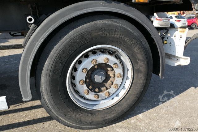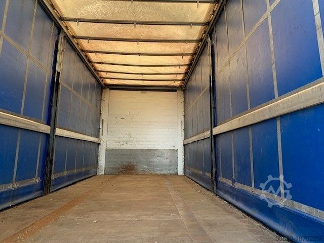 Конструкция бортовой платформы с тентом и бортами. Раздвижные тенты, раздвижная крыша, пол с трафаретной печатью, проложенный между продольными элементами и внешней рамой, 14 крепежных проушин с каждой стороны, ABS, EBS, ось(и) MERCEDES-BENZ, дисковая тормозная система, пневматическая подвеска с подъемно-опускным устройством, держатель запасного колеса под кузовом, транспортное средство может быть покрыто рекламой и/или наклеено
