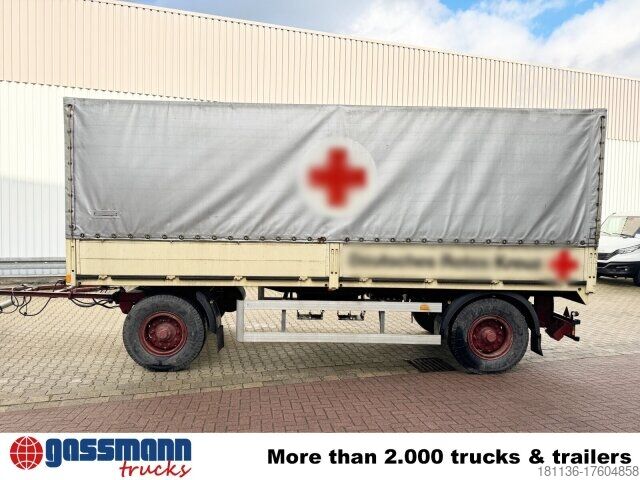 Vehicle location: Bovenden, tarpaulin and bows, 2-axle, turntable, leaf suspension, lashing eyes, container lock, side aluminum wheel guard, storage box, swing flaps