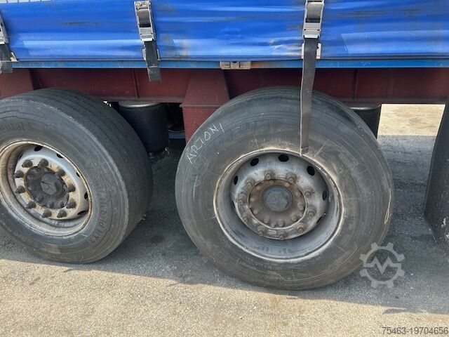 2-axle curtain-sided semi-trailer, French style. Inspected March 2025, valid until March 2026. Tyres at 80%. New aluminium doors. New sliding/roll-back roof tarpaulin. Disc brakes.