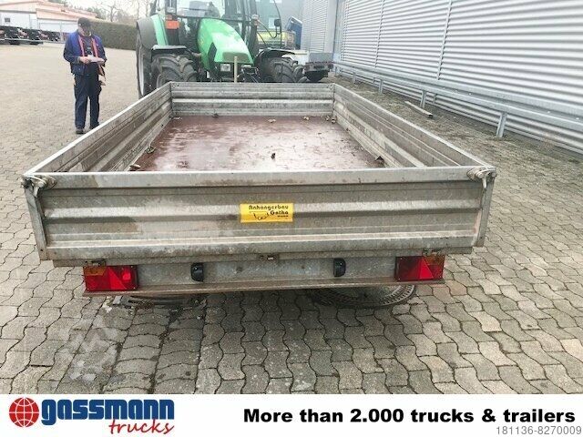 Body: platform trailer ex-Bundeswehr, hot-dip galvanized, overrun brake, loading height approx. 770mm, ball head coupling, anodized aluminium drop sides - removable. ACCESSORIES WITHOUT WARRANTY, subject to alterations, prior sale and errors excepted!