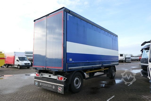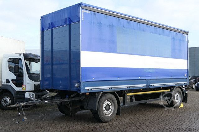 Носовая конструкция платформы из брезента с бортом. Сдвижной тент, сдвижной верх, противообледенительная система, алюминиевые боковые стенки, 1 делимая ширина 580 мм, пол с трафаретной печатью, 9 крепежных проушин с каждой стороны, соединительные головки Duo-Matic, ABS, EBS, ось SAF INTRA, дисковый тормоз система, пневматическая подвеска с устройством подъема и опускания, кузов автомобиля с Реклама может быть наклеена и/или маркирована