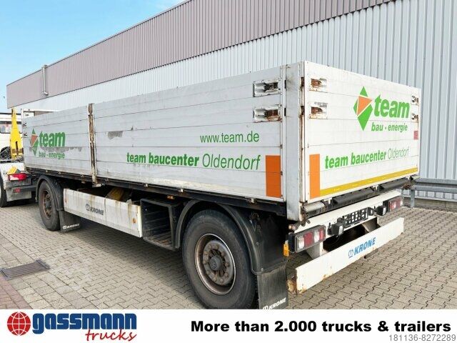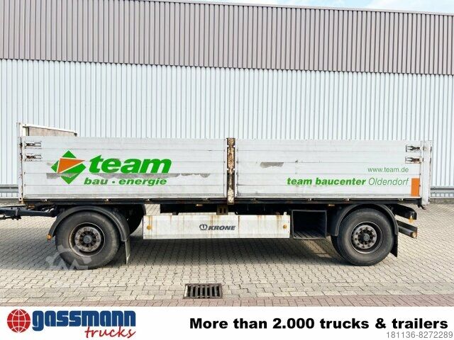 Body: Krone platform trailer with aluminum drop sides, aluminum drop sides, 2x 9t BPW axles, disc brakes, loading height approx. 1280mm! ACCESSORIES WITHOUT WARRANTY, subject to alterations, prior sale and errors excepted!