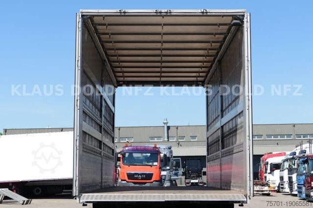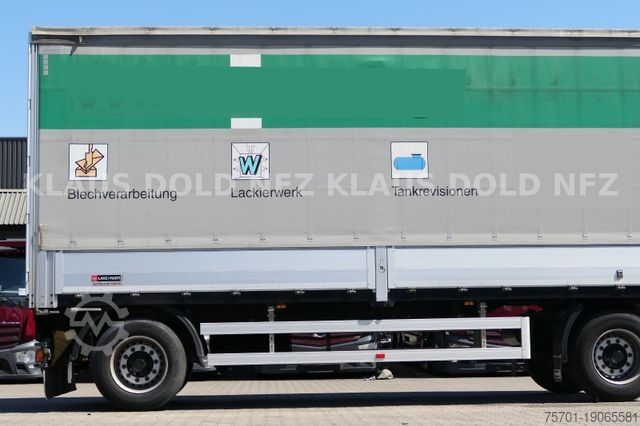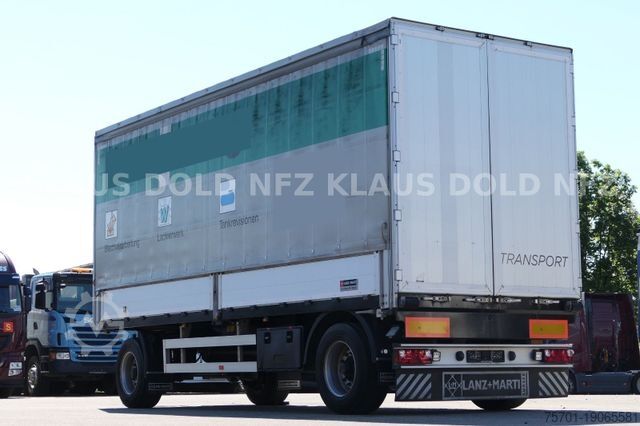 Lanz + Marti EU 18 flatbed with tarpaulin through-loading system and side walls
