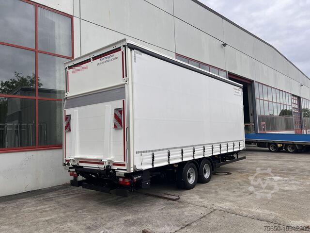 Load capacity 1,500 kg, 4 cylinder aluminum platform 1,800 mm long, 2 roll-off stops, with batteries and charging cable, front with portal doors for loading with short drive-over plate, 14 x lashing eyes, , , , -- Misprints, errors and changes reserved, sample images --, More data at: !, More Details: !