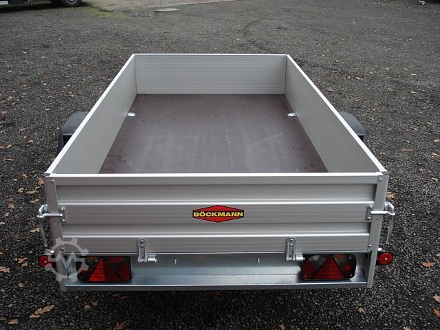 High tarpaulin (1,200 mm) in various colors and bows, aluminum side walls, screen-printed floor plate, side wall gallery, 13-pin plug, wheel chocks, support wheel,