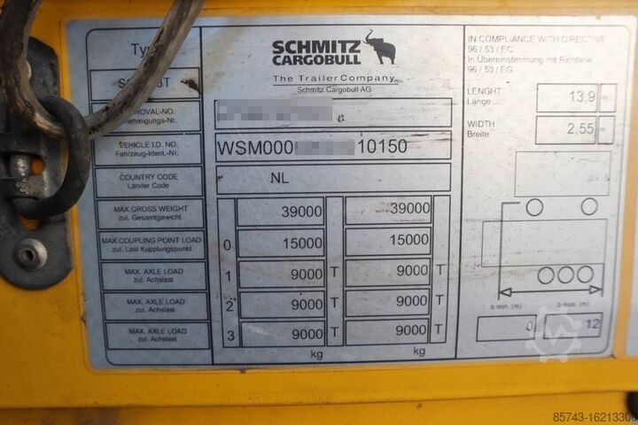 Раздвижные брезентовые навесы Schmitz CARG SCB3ST CoC Documents, TuV Loading Certificate