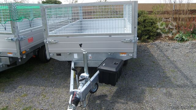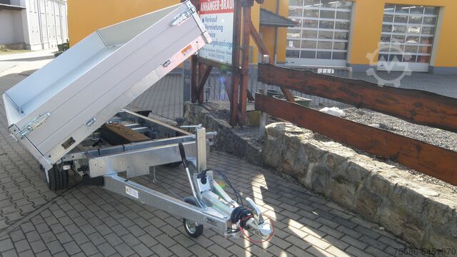 New series ! Three-way tipper, high loader with tandem axle, hot-dip galvanized steel frame, aluminium drop sides foldable and removable on all sides, wooden floor covered with sheet steel, electric operation, battery, lashing bracket as standard in the floor on the side in a V-groove, 13-pole electrical system, automatic jockey wheel, low chassis
