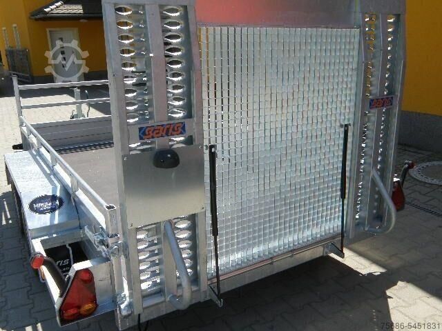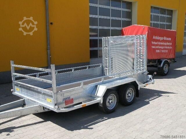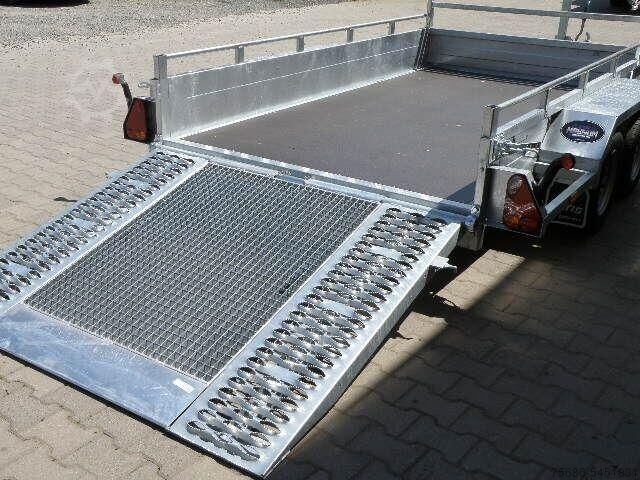 Equipment transporter, braked tandem low-loader with hot-dip galvanized steel drop sides, very robust, hot-dip galvanized and welded steel frame, 12 tie-down points as standard in the loading area at the side and front, 6 lashing hooks as standard outside the loading area, 13-pole electrical system, automatic jockey wheel