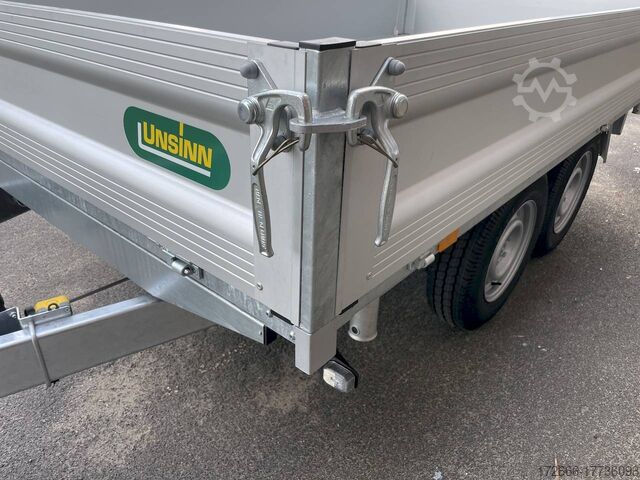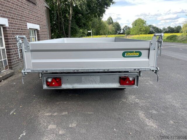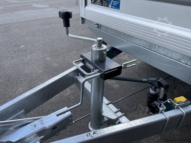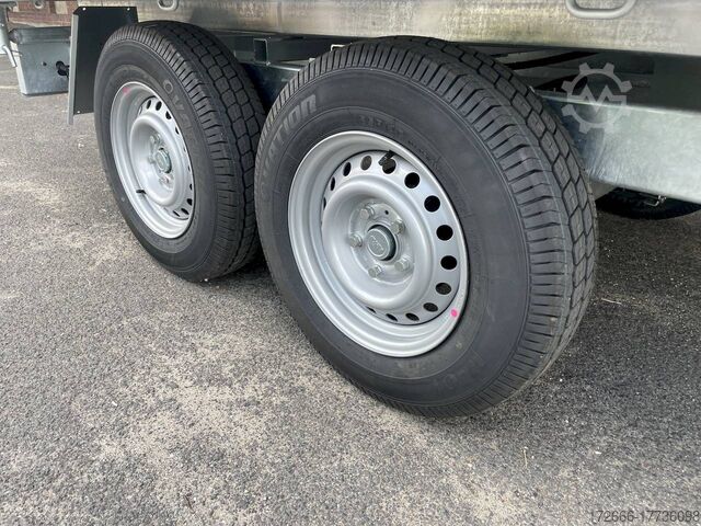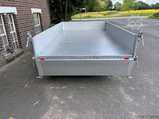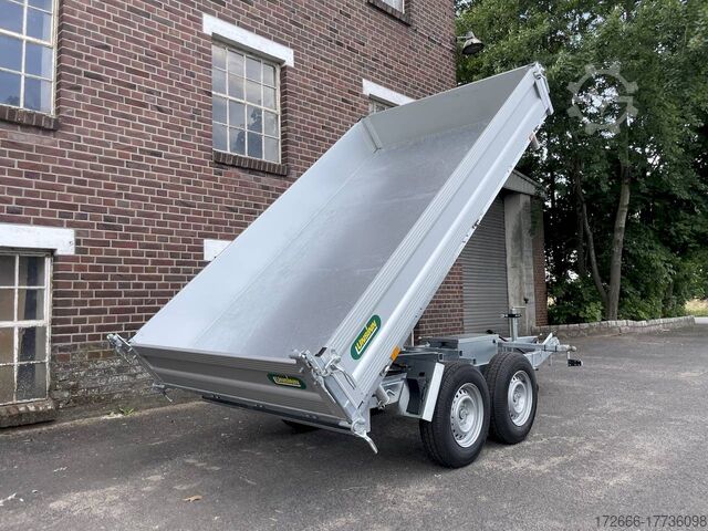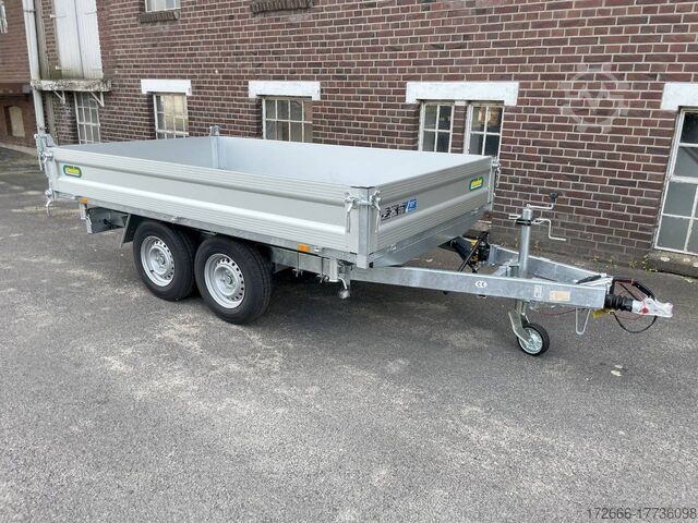 Hydraulics, automatic reverse drive, hot-dip galvanizing, roof window, electric pump / full steel floor, * IMMEDIATELY AVAILABLE * incl. electric pump / full steel floor Technical data: - Type: New vehicle - TÜV: New/2 years - Availability: IMMEDIATELY! - Gross vehicle weight: 3,500 kg - Unladen weight: 945 kg - Payload: 2,555 kg - Interior dimensions: 366 x 175 x 35 cm (L x W x H) - Overall exterior dimensions: 512 x 191 x 114 cm (L x W x H) - Loading sill height: 79 cm - Tires: 185R14C steel rim - Brake: yes - Support wheel: yes - 100 km/h: at extra charge - incl. vehicle documents Vehicle documents Vehicle superstructure: - Floor: solid steel floor, solidly reinforced - Drop sides: anodized aluminium double-walled, 4x folding & removable - Drop side height: 35cm - Chassis: high loader, ALKO rubber spring axle - Tipping function: yes, three-sided - Hydraulics: electro-hydraulic pump - Tipping angle: approx. 45 - Steps hydraulic cylinder: 3 steps - Overrun device & brake: ALKO - Frame/chassis: welded hot-dip galvanized steel frame - Attachment: at an extra charge extra charge - Lashing eyes: 8 pieces recessed in the floor - Supports: extra charge - Ramps: extra charge Standard equipment: - Unique, torsion-resistant longitudinal beam chassis for safe driving characteristics - Hollow profile construction welded and completely hot-dip galvanized - Preparation for loading rail bracket - Double-walled anodized aluminium drop sides - Drop sides can be folded to the side and rear - Removable drop sides - Full steel floor - Extremely robust - Very stable welded steel frame - Frame completely hot-dip galvanized. hot-dip galvanized - many sturdy cross beams for high point loading - additional longitudinal struts welded in throughout - electro-hydraulic pump - automatic reverse drive - ALKO overrun device and parking brake - sturdy tension locks - very sturdy V-drawbar REINFORCED - 13-pin plug - reversing lights - large reversing lights plug - reversing lights - generously dimensioned safety lighting - integrated rear fog light - lighting recessed in the rear frame - reinforced, automatic jockey wheel for safe parking of the loaded trailer, load capacity 500 kg - Premium maneuvering handle with tensioning strap retractor - registration documents: ZBII and COC papers Accessories can be retrofitted - please enquire: - 100km/h approval with shock absorbers - side wall attachment - corrugated grid attachment 60cm - closed sheet metal attachment 60cm - spare wheel - storage box - rear supports - ramps - flat tarpaulin - net hooks - reversing lights - lashing straps - and much more. New vehicle with warranty and TÜV. We are happy to offer you suitable financing !, Descriptions and pictures are protected by copyright !!! Over 800 trailers immediately available for you! We are for over 30 years Brian James / Humbaur / Hapert / Unsinn / Cheval Liberte / Koch / Debon / Stedele / TPV / Tohaco / Vezeko / Variant / Vlemmix - specialized dealer & repair - workshop - delivery Germany-wide with surcharge possible! Anhänger Zentrum BAUMANN GmbH Dinxperloer Str. 389 46399 Bocholt - Errors, omissions and prior sale excepted -