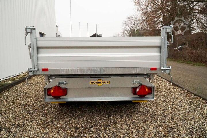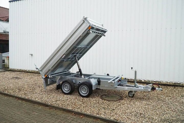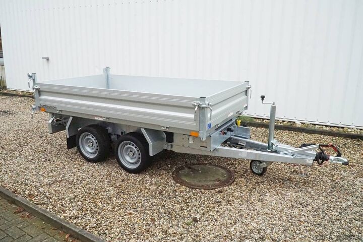 E-hydraulics / emergency hand pump / full steel floor, automatic reverse drive, hot-dip galvanizing, roof window, * IMMEDIATELY AVAILABLE * incl. E-hydraulics / emergency hand pump / full steel floor Technical data: - Type: New vehicle - TÜV: New/2 years - Availability: IMMEDIATELY! - Gross vehicle weight: 2,700 kg - Unladen weight: 870 kg - Payload: 1,830 kg - Interior dimensions: 314 x 175 x 35 cm (L x W x H) - Overall exterior dimensions: 450 x 193 x 126 cm (L x W x H) - Loading sill height: 75 cm - Tyres: 195/50R13C steel rim - Brake: yes - Support wheel: yes, automatic - 100 km/h: at extra charge - incl. vehicle documents Vehicle superstructure: - incl. electric hydraulic pump - incl. electric hydraulic pump Vehicle documents Vehicle superstructure: - Floor: solid steel floor, solidly reinforced - Side walls: anodized aluminium double-walled, 4x folding & removable - Side wall height: 35cm - Chassis: high loader, ALKO rubber spring axle - Tipping function: yes, three-sided - Hydraulics: electric & emergency hand pump tipping - Tipping angle: approx. 45 - Steps hydraulic cylinder: 3 steps - Overrun device & brake: ALKO - Frame/chassis: welded hot-dip galvanized steel frame - Attachment: at extra charge - Lashing eyes: 6 pieces in the floor (800kg/daN) - Supports: at extra charge - Ramps: at extra charge Standard equipment: - Anodized double-walled aluminium drop sides - Drop sides can be folded to the side and rear - Drop sides can be removed - Rear flap can also be swivelled - Full steel floor - Extremely robust - Very sturdy welded steel frame - Frame completely hot-dip galvanized - Many options available hot-dip galvanized - many sturdy cross members for high point loading - additional longitudinal struts welded in throughout - electric hydraulics for tipping with battery in the box and cover - 71AH battery - battery is charged via 13-pin plug from the towing vehicle (provided all pins of the socket are connected) - external battery charging socket for 230V charger - emergency hand pump, for manual tipping when the battery is empty - lashing hooks welded to the bottom of the frame - automatic reversing system - ALKO overrun device and parking brake - ramp rail shaft as preparation for aluminum rails for easy retrofitting - sturdy angle lever locks - very sturdy bolted V-drawbar REINFORCED - 13-pin plug - reversing lights - large reversing lights plug - reversing lights - large safety lighting - integrated rear fog light - lighting recessed in rear frame - automatic center support wheel - registration papers: ZBII and COC papers Accessories can be retrofitted - please enquire: - 100km/h approval with shock absorbers - side wall attachment - corrugated grid attachment 60cm - closed sheet metal attachment 60cm - spare wheel - storage box - battery - 230V charger - rear supports - ramps - flat tarpaulin - net hooks - additional lashing eyes - slotted-hole rails for tension belts & locking beams - bar strip with rubber coating for tension belts & locking beams - reversing lights - lashing straps - and much more. New vehicle with warranty and TÜV. We are happy to offer you suitable financing !, Descriptions and pictures are protected by copyright !!! Over 800 trailers immediately available for you! We are for over 30 years Brian James / Humbaur / Hapert / Unsinn / Cheval Liberte / Koch / Debon / Stedele / TPV / Tohaco / Vezeko / Variant / Vlemmix - specialized dealer & repair - workshop - delivery Germany-wide with surcharge possibl