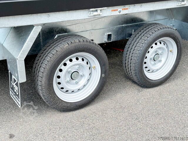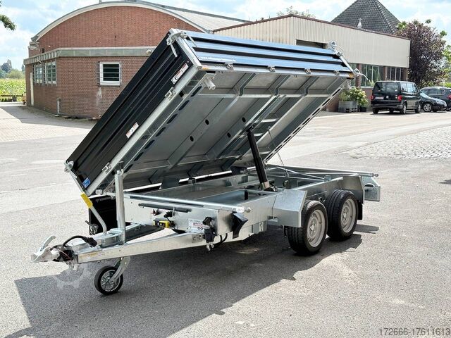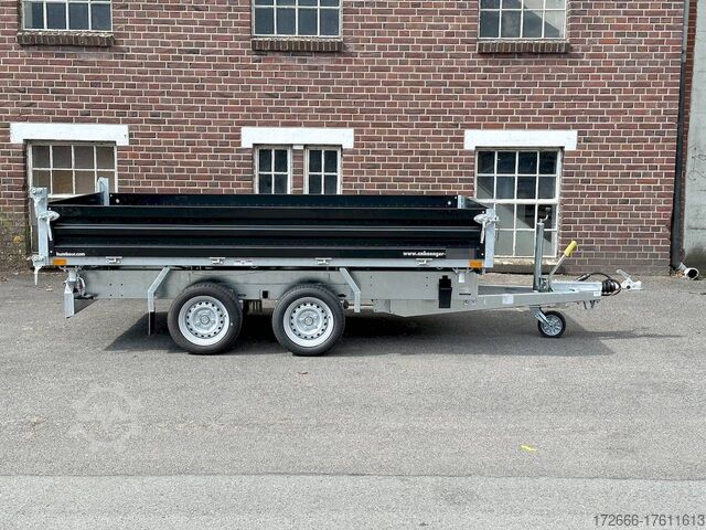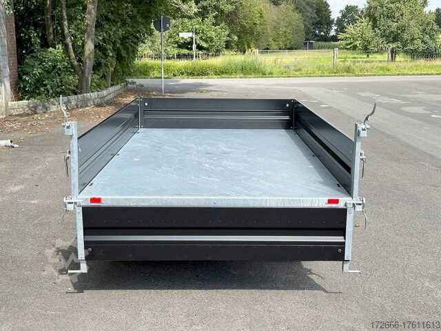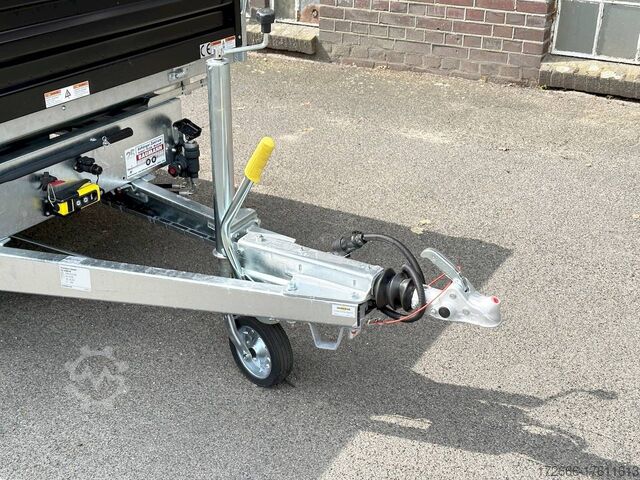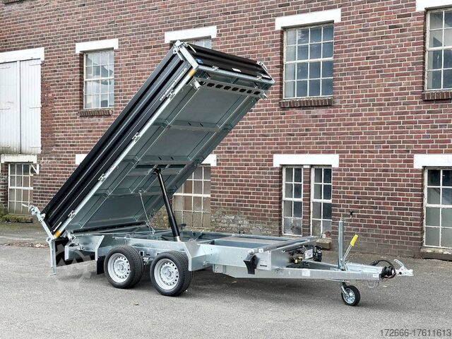 E-hydraulics / steel drop sides / emergency hand pump / full steel floor, automatic reverse drive, hot-dip galvanizing, roof window, * IMMEDIATELY AVAILABLE * incl. E-hydraulics / steel drop sides / emergency hand pump / full steel floor Technical data: - Type: New vehicle - TÜV: New/2 years - Availability: IMMEDIATELY! - Gross vehicle weight: 3,000 kg - Unladen weight: 915 kg - Payload: 2,085 kg - Interior dimensions: 314 x 175 x 35 cm (L x W x H) - Overall exterior dimensions: 450 x 193 x 126 cm (L x W x H) - Loading sill height: 75 cm - Tires: 195/50R13C steel rim - Brake: yes - Support wheel: yes, automatic - 100km/h: at extra charge - incl. Vehicle documents Vehicle superstructure: - Floor: solid steel floor, solidly reinforced - Drop sides: double-walled steel drop sides, 4x folding & removable - Drop side height: 35cm - Chassis: high loader, ALKO rubber spring axle - Tipping function: yes, three-sided - Hydraulics: electric & emergency hand pump tipping - Tipping angle: approx. 45 - Steps hydraulic cylinder: 3 steps - Overrun device & brake: ALKO - Frame/chassis: welded hot-dip galvanized steel frame - Attachment: at extra charge - Lashing eyes: 6 pieces in the floor (800kg/daN) - Supports: at extra charge - Ramps: at extra charge Standard equipment: - STAHL drop sides anodized double-walled - Drop sides foldable at the side and rear - Drop sides removable - Tailgate also swingable - Full steel floor - Extremely robust - Very sturdy welded steel frame - Frame completely hot-dip galvanized - Many options available - Many options available - Many options available - Many options available - Many options available. hot-dip galvanized - many stable cross members for high point loading - additional longitudinal struts welded in throughout - E-hydraulics for tipping with battery in the box and cover - 71AH battery - battery is charged via 13-pin plug from the towing vehicle (provided all pins of the socket are connected) - external battery charging socket for 230V charger - emergency hand pump, for manual tipping when the battery is empty - lashing hooks welded to the bottom of the frame - automatic reversing system - ALKO overrun device and parking brake - ramp rail shaft as preparation for aluminum rails for easy retrofitting - sturdy angle lever locks - very sturdy bolted V-drawbar REINFORCED - 13-pin plug - reversing lights - large reversing lights plug - reversing light - large safety lighting - integrated rear fog light - lighting recessed in rear frame - automatic center support wheel - registration papers: ZBII and COC papers Accessories can be retrofitted - please enquire: - 100km/h approval with shock absorbers - side wall attachment - corrugated grid attachment 60cm - closed sheet metal attachment 60cm - spare wheel - storage box - battery - 230V charger - rear supports - ramps - flat tarpaulin - net hooks - additional lashing eyes - slotted-hole rails for tension belts & locking beams - bar strip with rubber coating for tension belts & locking beams - reversing lights - lashing straps - and much more. New vehicle with warranty and TÜV. We are happy to offer you suitable financing !, Descriptions and pictures are protected by copyright !!! Over 800 trailers immediately available for you! We are for over 30 years Brian James / Humbaur / Hapert / Unsinn / Cheval Liberte / Koch / Debon / Stedele / TPV / Tohaco / Vezeko / Variant / Vlemmix - specialized dealer & repair - workshop - delivery Germany-wide with surcharge possible