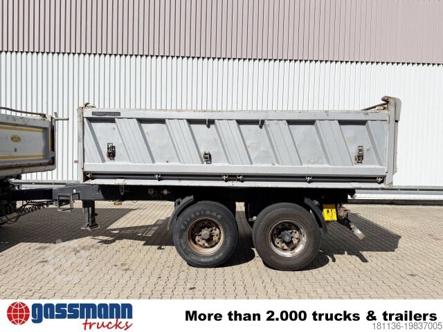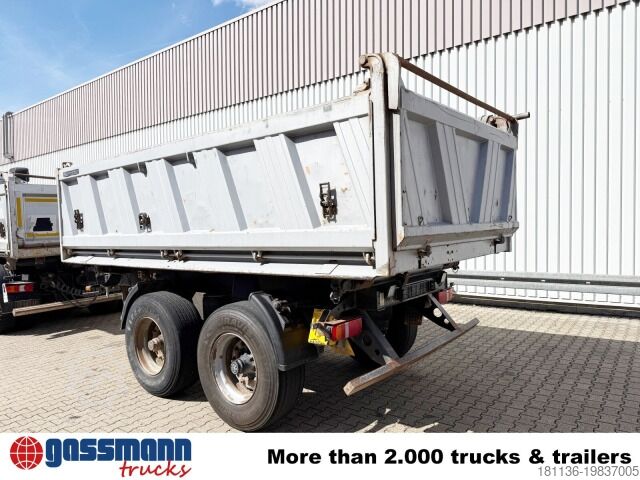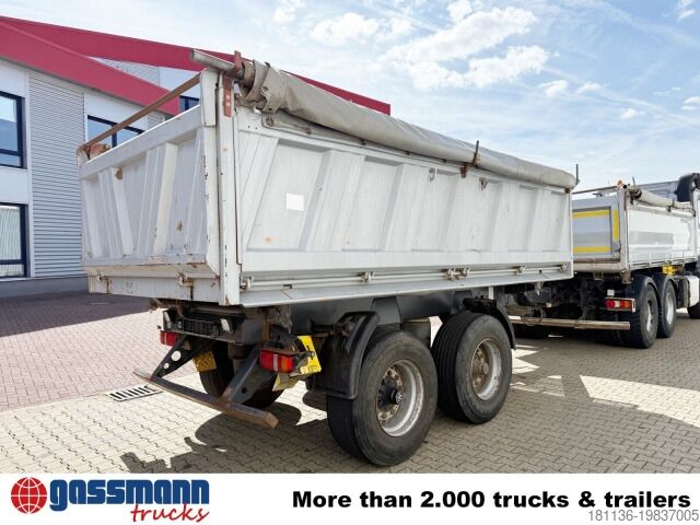 Body: 3-way tipper trailer with sliding tarpaulin, approx. 10 m³, 2x 9t BPW axle, drum brakes!