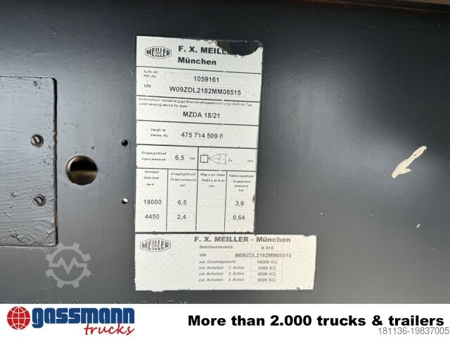 Vehicle location: Bovenden, steel body, Jet sideboards, 2 axles, BPW axles, tandem, air suspension, ABS (anti-lock braking system), sliding tarpaulin, underrun protection, front support legs, pendulum flaps