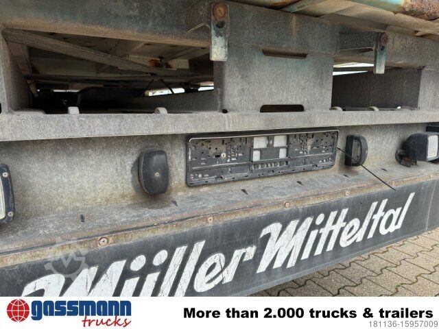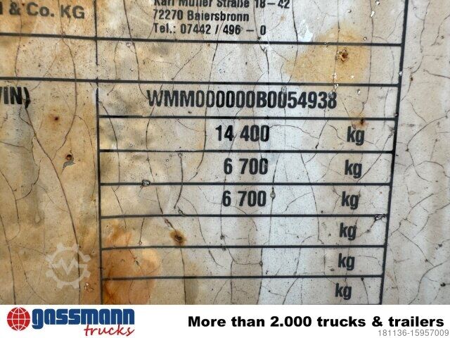 Vehicle location: Bovenden, 2-axle, tandem, air-suspended, ABS (anti-lock braking system), flap, lashing eyes, U-protection, front support, rear support, pendulum flaps, height-adjustable drawbar