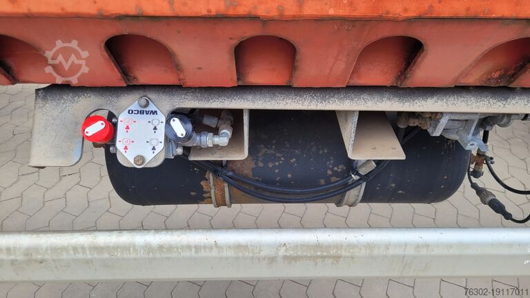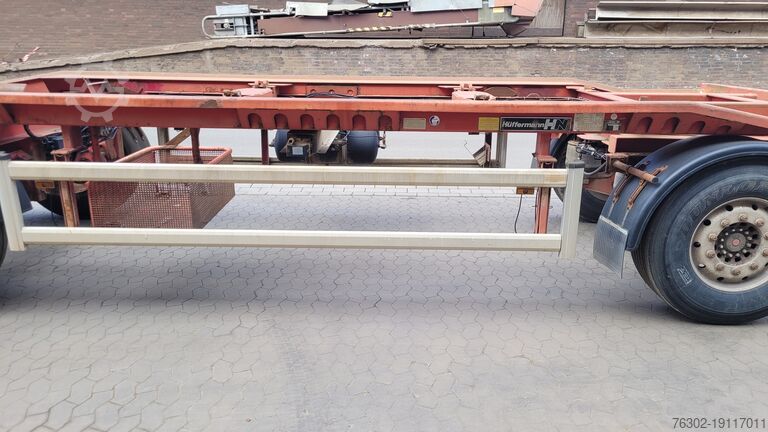 Hüffermann trailer for roll-off containers, SAF axles, net basket, 2 pneumatic locking systems, aluminum rims, 90% tires, first-hand German trailer.