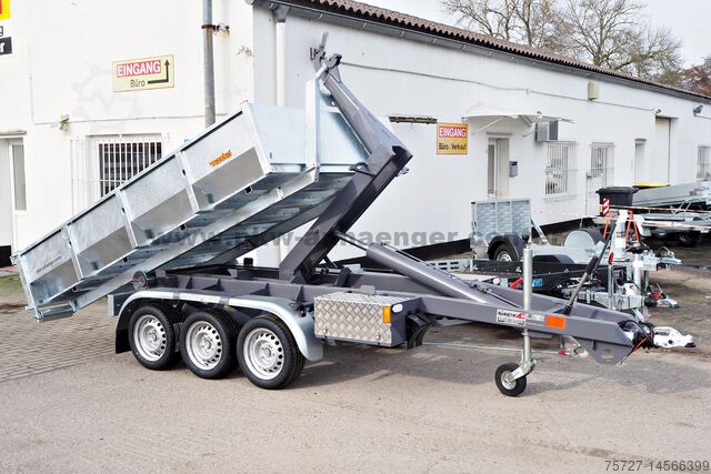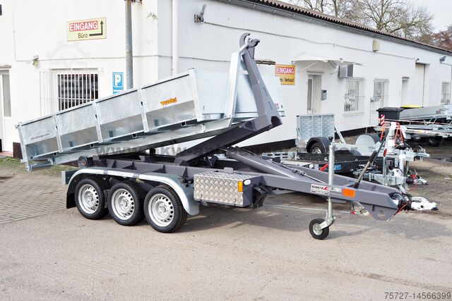 Disposal of bulk material, bulky waste, rubble, garden waste or similar and the delivery of building material, gravel, sand and firewood is made much easier with this skip container trailer.