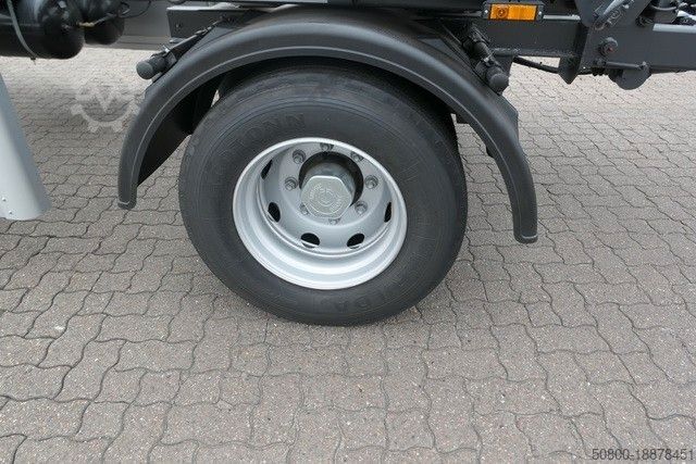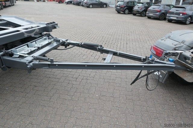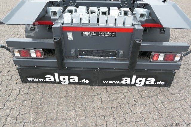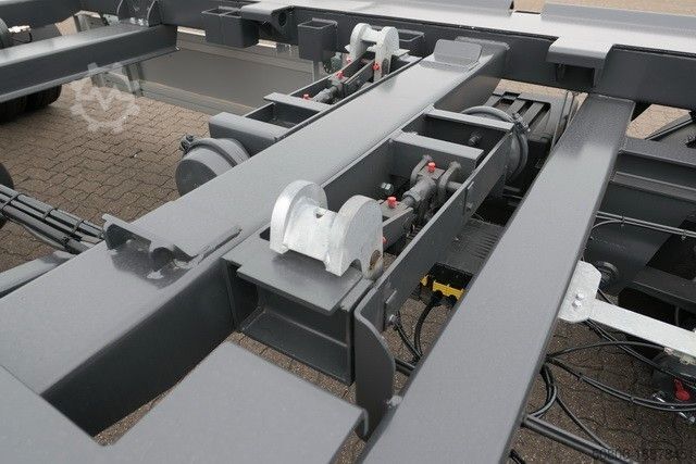Прицеп для комбинированной перевозки контейнеров на роликах или макс. 2 контейнера-контейнера по 10 м³, общая длина контейнера 5000 - 7000 мм, высота в разгруженном состоянии ок. 1150 мм, загрузка контейнеров-самосвалов спереди через дышло с пневматическим опускающим устройством, пневматическая блокировка контейнера, 3 проушины для крепления с каждой стороны, ABS, EBS, ось(и) «Gigant», дисковая тормозная система, пневматическая подвеска с подъемно-опускным устройством, сдвоенные шины, многофункциональные фонари, частично светодиодные, светодиодные боковые габаритные фонари, сцепная головка Duo-Matic, ящик для хранения, сбоку. Защита от столкновений, транспортное средство может быть покрыто рекламой и/или иметь этикетки