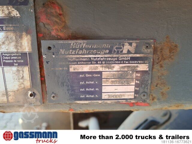 Vehicle location: Bovenden, 2-axle, SAF-axles, turntable, air suspension, lifting+lowering, ABS (anti-lock braking system), container locking, U-protection, side aluminum wheel guards, twin tyres, storage box