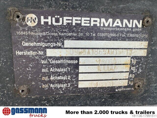 Vehicle location: Bovenden, 2 axles, BPW axles, turntable, air suspension, ABS (anti-lock braking system), container locking system, skid, U-guard, side aluminum underbody protection, twin tires.