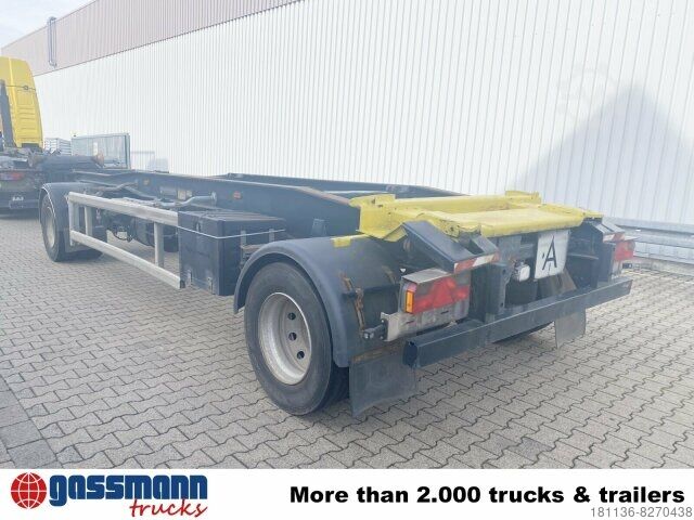 Vehicle location: Bovenden, 2-axle, SAF axles, turntable, air-suspended, lifting+lowering, ABS (anti-lock braking system), container locking, sled, U-protection, lateral aluminum wheel guard, twin tyres, storage box